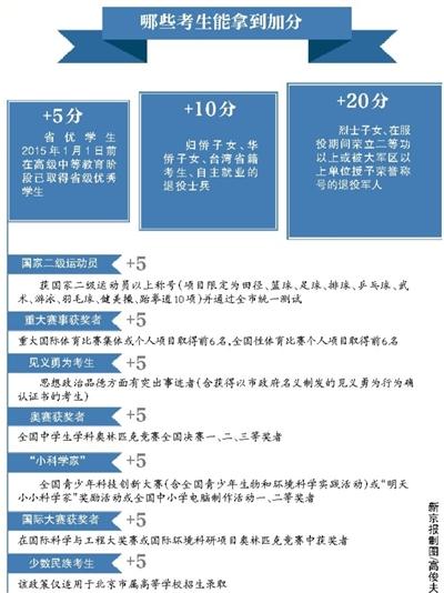 ![]() 北京高考两类考生可加20分 包括烈士子女等;高考加分调整分三档,加分造假将取消高考资格 近日,北京市教委正式公布了2015年高考加分实施方案,将于5月8日起实行。方案显示,今年北京高考仅有两类考生可以享受20分加分,分别是烈士子女,以及在服役期间荣立二等功以上,或被大军区以上单位授予荣誉称号的退役军人。 北京市教委介绍,北京市属高校的地方性加分,由去年的少数民族、市优干和市三好,削减为今年的少数民族考生一项,将在高考成绩总分的基础上增加5分向高校提供档案,由高校审查决定是否录取。 相关要求规定,同时符合多项高考加分条件的考生,不作为累计加分,只取最高一项分值作为考生附加分投档。 北京市教委要求,今年要强化加分考生资格审核。其中教育部门要加强对申请高考加分考生资格的审查;体育、科协等部门和单位要加强对相关赛事获奖证书、等级证书的认定和严格管理;民族、公安等部门要严格执行民族成分认定和户籍变更有关工作标准和程序。以此防范和杜绝违法违规行为的发生。 市教委表示,对于弄虚作假、骗取相关加分资格的考生,一经查实,依法依规取消其当年参加高考报名、考试或录取资格。(记者 黄颖) |