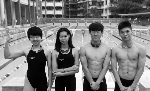 ![]() 穿上泳装的四小将身材尤其健美。(从左到右,彭楚粤、陈婉恒、李宪治、李志杰。) 冯宙锋 摄
