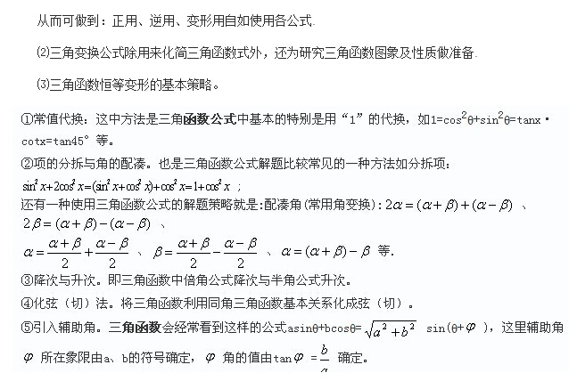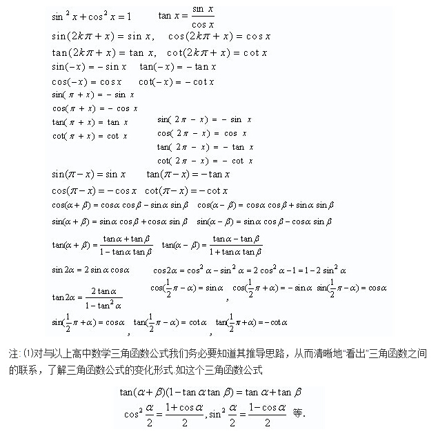 高中三角函数公式表