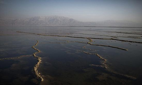 ![]() 死海的一个水塘干涸后,它的南边正在生成盐。