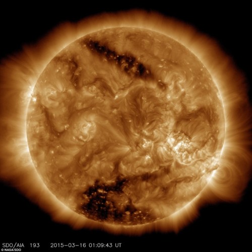 ![]() 据国外媒体报道,美国宇航局发现太阳表面有两个大“洞”。它们都是日冕洞。其中较大的一个位于南极附近,据估计覆盖太阳总表面的6%到8%,这使它成 为科学家几十年中发现的最大极洞之一。另一个较小的日冕洞位于北极,是个狭长区域,覆盖约38亿平方英里,仅占太阳表面的0.16%。 美国宇航局说:“日冕洞是太阳外层大气密度和温度较低的黑暗区域。日冕洞可能是包围地球的太阳粒子的快速太阳风的来源之一。”这些区域的磁场向外延伸,进入太空,而不是迅速回送到太阳表面。在这张照片的非日冕洞区域中,回送到太阳表面的磁场以弧线呈现出来。 照片右下象限明亮的活跃区域是上周产生太阳耀斑的同一区域。这是美国宇航局第二次发现太阳表面有个大洞。太阳2015年开始出现一个神秘事件:它的表面出现一个大洞。这个现象叫日冕洞,发生于南极附近。正如这些惊人照片显示的那样,整个南极出现一个黑色区域。 美国宇航局天空实验室空间站宇航员1973和1974年拍摄的照片最早展示了日冕洞。过去很长时间以来,它们一直出现在我们的视野中,但它们的准确形状总是不断变化。极地日冕洞可能在5年或更长时间内依然是可见的。 日冕洞每次转向地球时,我们都可以测量以高速流的形式从这个洞流出的粒子。这是我们研究太空天气的另一个来源。这个高速流撞进地球磁层时,地球辐射带的带电粒子就会加速。美国宇航局的范-艾伦探测器任务负责研究地球磁层粒子的加速。 美国宇航局太阳动力学天文台太阳大气成像仪(AIA)1月1日拍到这张惊人照片。它显示,太阳南极出现一个黑色的日冕洞。日冕洞是日冕区域。这里的磁场向外延伸,进入太空,而不是回送到太阳表面。 沿着这些磁场移动的粒子可能离开太阳,而不是困在太阳表面附近。那些俘获粒子可能升温,发光。我们可从美国宇航局太阳动力学天文台太阳大气成像仪拍摄的照片中看到这一情景。在日冕区域,粒子离开太阳,发出的光更暗淡。于是,日冕洞看上去是一个十分黑暗的区域。 太阳第24个周期消失时,耀斑数每天都会减少,但日冕洞为需要了解和预测的太空天气提供另一个来源。日冕洞是太阳的典型特征。它们出现在太阳表面的不同地方,而且更加频繁地发生于太阳活动周期的不同时期。 这些洞对我们了解太空天气是非常重要的,因为它们是高速太阳粒子风的来源。这里的太阳风以快于太阳其他区域太阳风约3倍的速度喷射出去。日冕洞的形成原因还不清楚,但它们和磁场升起、远离而未能回送到太阳表面的太阳区域有关。 平均来说,日冕有180万华氏度(约合100万摄氏度)。而太阳表面的温度和日冕相差甚远,只有1.08万华氏度(约合6000摄氏度)。这就好像一束火焰 从一块冰中喷出来。毫微耀斑可能是这种酷热的来源。如果核光谱天文望远镜阵列捕获活动中的毫微耀斑,就可帮助科学家解开这个存在数十年之久的难题。 戴尔表示,这类事件不只是一个威胁,还是不可避免的。美国宇航局科学家预测,平均每隔150年,地球就经历一次卡林顿事件级的日冕物质抛射。这意味着再过5年地球就要经历这样一个事件。与此同时,接下来10年内发生一次日冕物质抛射的几率高达12%。(孝文) |