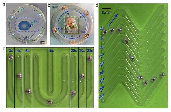 中国科学家造出了世界首台液态金属机器,这一成就被外媒形容为制造出“终结者”。 据中科院理化所网站,3月3日,由刘静研究员带领的中国科学院理化技术研究所、清华大学医学院联合研究小组,在Advanced Materials上发表了题为“Self-Fueled Biomimetic Liquid Metal Mollusk”(2015)的研究论文,迅速被New Scientist、Nature研究亮点、Science新闻等数十个知名科学杂志或专业网站专题报道,在国际上引起重要反响和热议。 此项研究于世界上首次发现了一种异常独特的现象和机制,即液态金属可在吞食少量物质后以可变形机器形态长时间高速运动,实现了无需外部电力的自主运动,从而为研制实用化智能马达、血管机器人、流体泵送系统、柔性执行器乃至更为复杂的液态金属机器人奠定了理论和技术基础。这是该小组继首次发现电控可变形液态金属基本现象(Sheng et al., Advanced Materials, 2014, 封面文章;Zhang et al., Scientific Reports, 2014)之后的又一突破性发现。 这种液态金属机器完全摆脱了庞杂的外部电力系统,从而向研制自主独立的柔性机器迈出了关键的一步。文章被选为期刊内前封面故事,Altmetric计量学数据显示其指数已达71.0,远高于期刊平均值6.7,在同时期论文中则排名No.1。 研究揭示,置于电解液中的镓基液态合金可通过“摄入”铝作为食物或燃料提供能量,实现高速、高效的长时运转,一小片铝即可驱动直径约5 mm的液态金属球实现长达1个多小时的持续运动,速度高达5cm/s。这种柔性机器既可在自由空间运动,又能于各种结构槽道中蜿蜒前行;令人惊讶的是,它还可随沿程槽道的宽窄自行作出变形调整,遇到拐弯时则有所停顿,好似略作思索后继续行进,整个过程仿佛科幻电影中的终结者机器人现身一般。 应该说,液态金属机器一系列非同寻常的习性已相当接近一些自然界简单的软体生物,比如:能“吃”食物(燃料),自主运动,可变形,具备一定代谢功能(化学反应),因此作者们将其命名为液态金属软体动物。这一人工机器的发明同时也引申出“如何定义生命”的问题。 目前,实验室根据上述原理已能制成不同大小的液态金属机器,尺度从数十微米到数厘米,且可在不同电解液环境如碱性、酸性乃至中性溶液中运动。试验和理论分析表明,此种自主型液态金属机器的动力机制来自两方面:一是发生在液态合金、金属燃料及电解液间的Galvanic电池效应会形成内生电场,从而诱发液态金属表面的高表面张力发生不对称响应,继而对易于变形的液态金属机器造成强大推力;与此同时,上述电化学反应过程中产生的氢气也进一步提升了推力。正是这种双重作用产生了超常的液态金属马达行为,这种能量转换机制对于发展特殊形态的能源动力系统也具重要启示意义。 ![]() 可变形液态金属机器在内含电解液的容器或各种槽道中的自主运动情形 ![]() 自主型液态金属机器所展示的人工软体动物、实物马达及其驱动流体情形 在迄今所发展的各种柔性机器中,自主型液态金属机器所表现出的变形能力、运转速度与寿命水平等均较为罕见,这为其平添了诸多重要用途。作为具体应用器件之一,论文还特别展示了首个无需外界电力的液态金属泵,通过将其限定于阀座内,可达到自行旋转并泵送流体的目的,据此可快速制造出大量微泵,满足诸如药液、阵列式微流体的输运等,成本极低;若将此类柔型泵用作降温,还可实现高度集成化的微芯片冷却器;进一步的应用可发展成血管或腔道机器人甚至是可自我组装的液态金属智能机器等。 刊载上述首创性发现的文章在线发表后,短时间内即引起世界范围内众多科学杂志、专业网站和新闻媒体的高度重视。New Scientist在第一时间以文章和精心制作的视频进行了报道:“液态金属朝可变形机器人迈进一步(Liquid metal brings shape-shifting robot a step closer)”指出其“将成为今后电影中人工生命的种子(Such liquid robots will be a seed of artificial life seen in some movies)”;Nature杂志在其研究亮点栏目以“液态金属马达靠自身运动(Liquid metal motor moves by itself)”为题进行了报道;Science网站发布观察文章和视频:“可变形金属马达拥有一系列用途(Shape-shifting metal motor has a variety of uses)”;路透社也对此进行了专门报道。 众多报道此项工作的科学杂志或专业网站还有,物理学家组织网站:“可在液体中自行驱动的可变形液态金属(Shape shifting liquid metal able to propel itself through liquids)”;化学和工程新闻C&EN:“旋转的液态金属马达(Rolling Out Liquid-Metal Motors)”;Uncover California:“世界首个液态金属机器人(World's First Liquid Metal Robot)”;Siliconrepublic:“首个终结者型液态马达问世,具无限潜力(First Terminator-1000-like liquid motor developed with unlimited potential)”;镜报mirror:“真实的终结者1000液态金属马达(real-life-t-1000-liquid-metal-motor)”;Popular Science:“终结者智能液态金属或为新一轮军备竞赛的第一步(Terminator-Like ‘Smart Liquid Metal'May Be The First Step In A New Arms Race)”;Space Daily等:“液态金属机器人几乎已在这儿,并且他们由中国制造(Liquid Metal Robots Are Almost Here and They Are Made in China)”;Popular Mechanics:“终结者1000机器人或许就由这种自主行走的液态金属制成(The T-1000 Is Probably Made of This Liquid Metal That Moves Itself)”;更多网站则纷纷展望了这一开创性技术在机器人、药物递送、血管和环境监测等方面的应用前景,认为“机器人工