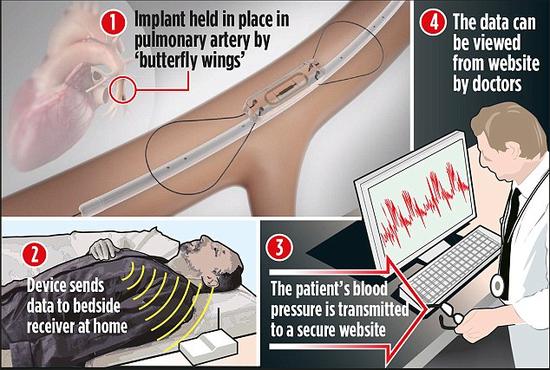 ![]() 医生可以通过这一装置远程测量患者肺动脉中的血压波动情况,并相应调整药物剂量。 ![]() 英国伦敦皇家布朗普顿医院是首家开展新“植入式远程无线监测系统”植入临床试验的医院。 据介绍,这一装置名为“植入式远程无线监测系统”,仅相当于一枚5便士硬币大小,形状像是一个微型的装有发条的蝴蝶。医生可以通过这一装置远程测量患者肺动脉中的血压波动情况,并相应调整药物剂量。这种远程诊疗方式也可以大大减少患者赴医院就医次数。 目前,接诊医生主要还是依靠外用的监测仪器来测量血压,如老式的充气袖带血压计。新的“植入式远程无线监测系统”中有一个传感器,可以发出信号。在患者家中的床边还装有一个小型接收器,用于接收传感器发来的信号。接收器然后将数据传输到外部网络,接诊医生就可以远程测量血压并诊断。 临床试验结果证明,新型“植入式远程无线监测系统”监测结果极其准确,它不仅仅可以大大降低患者就医频率,而且还可以让患者从此摆脱病痛的折磨。英国伦敦皇家布朗普顿医院是首家开展新“植入式远程无线监测系统”植入临床试验的医院。一次植入手术约需1.3万英镑费用。到目前为止,共有7名患者接受了植入手术。心脏病医学专家马丁-科威教授介绍说,一次在巴西开会时,他的一名患者出现脱水症状。幸好有这一系统,让科威教授能够及时远程指导患者饮水和服药。他认为,“到医院就诊,通常至少要呆一周时间。如果我们能够让患者赴医院就诊的次数减少到三次以内,就体现出这一装置的价值了。” 心力衰竭也被称为充血性心力衰竭,是由于心脏受损或虚弱等功能障碍引起的一种常见病症,会导致心室泵血或充盈功能低下。据不完全统计,英国目前大约有75万人饱受心力衰竭病症的折磨,近年来每年新发现病例约2.7万人。男性患者数量要比女性患者高60%左右。由于这一病症没有较好的治愈手段,因此治疗方法主要是缓解症状,降低疾病等级。药物控制是手段之一,有时也可以安装起搏器。医生建议,改变生活方式也是一种较好的缓解症状方法,如减少盐的摄入量也能够控制血压。 新“植入式远程无线监测系统”的植入过程其实和冠脉内支架术有些相似。首先,需要在其腹股沟处动脉上切开一个切口,再通过一个导管将“植入式远程无线监测系统”装置送到肺动脉。然后,将两个柔软的金属圈固定于系统的两侧,就好像是蝴蝶的两个“翅膀”。在整个手术过程中,只需要局部麻醉,手术时间仅20分钟左右。如果没有并发症,患者当天即可回家。 新“植入式远程无线监测系统”不需要电池提供能量,有效作用可伴随患者一生。皇家布朗普顿医院最早治疗的患者中,现年76岁的雷格-杨曼就是受益者之一。雷格-杨曼来自赫特福德郡,他自幼年起心脏就有问题,成年后被诊断为心力衰竭。1998年,杨曼接受心脏手术,两年后又安装了起搏器。在过去12个月中,杨曼病情恶化,不得不赴医院治疗或在家里接受上门治疗,次数不下40次。 雷格-杨曼介绍说,“当我被告知有新的治疗装置时,我想它也许可以帮助我,我非常想安装这种装置。如果我的心脏出现了问题,我的医生会在我知道之前就已经掌握情况了。这太神奇了。我希望,在我被紧急送入急诊室之前,它就能够真正地提早发现问题。”(彬彬) |