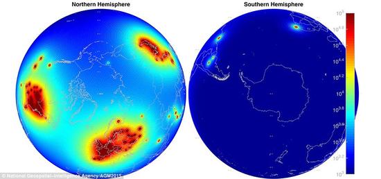 ![]() 反中微子排放地图,有助于科学家了解地球内部状况 ![]() 对来自核反应堆的反中微子的探测,有助于科学家进一步了解核反应过程,以及未来可能的防核应用。图中显示了南、北半球核反应堆的反中微子活动热点,重点区域为欧洲、美国和中国。