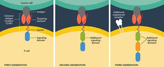 ![]() 患急性淋巴细胞白血病(ALL)这种可怕癌症的埃米莉-怀特海德 ![]() 埃米莉-怀特海德治疗后和治疗前的对比 8岁的埃米莉-怀特海德(Emily Whitehead)5岁就被诊断出患上急性淋巴细胞白血病(ALL)这种可怕的癌症,第一轮化疗时便受感染,双腿几乎不保,经治疗后病情有所缓解,计划骨髓移植。然而等待骨髓移植期间白细胞又一次复发,这次再也无计可施的她6岁时接受了CAR T(T细胞嵌合抗原受体)免疫细胞治疗,她是第一位接受CAR细胞治疗的儿童患者。小埃米莉接受的是一种除了大胆的实验性治疗外还从未对一个孩子进行的试验性疗法:抽取小埃米莉的血液,在其中提取她的白细胞,利用改良的艾滋病毒对这些白细胞进行改造,教会它们识别肿瘤细胞并进行杀伤。改造后的白细胞又重新输回小姑娘的体内。经历了噩梦般的连续高烧后,小埃米莉挣脱了死神的束缚重新醒了过来。 接受这种疗法之后的两年埃米莉身体健康,可以跟家里的小狗滚作一团,可以上学,可以学钢琴,她的头发也长出来了扎成马尾辫,可以像其他孩子一样体验生命的美好,医生和科学家们的疯狂试验成功了。CART的出现使人们在对抗癌症这一隐性又无处不在的恶魔的战争中,找到了扭转战局的契机。 在2015年的深圳国际BT领袖峰会上,美国宾夕法尼亚州大学终身教授、美国科学院院士卡尔-朱恩教授在会上发表了主题演讲:决胜癌症,向人们介绍CAR T这种神奇的疗法。 ![]() 美国宾夕法尼亚州大学终身教授、美国科学院院士卡尔-朱恩教授 卡尔-朱恩教授是CAR T技术的发明者,迄今已发表超过360篇SCI论文,申请专利46项,授权31项,2014年,FierceBiotech将他评为“全球生物制药界最有影响力的科学家”。 埃米莉战胜癌症并非个例,卡尔-朱恩教授介绍说,接受CAR-T疗法的还有一个美籍华人小男孩,“我上次见到他,我问他癌症怎么样,他说他全身的肌肉很痛,在得到治疗之后,他说他已经想要并且认为自己可以成为一名棒球手。” 2014年12月,在美国血液学学会(ASH)的会议上,Juno Therapeutics公司的科学家报告了在进行当中的嵌合抗原受体(CAR)T细胞疗法“JCAR015”1期治疗的情况。在治疗中,27位急性淋巴性白血病(ALL)成年患者中有24位的病情有所缓解,其中6人在超过一年时间里都没有受到该疾病的困扰。急性淋巴性白血病是一种非常难以治疗的疾病,而且病情发展迅速,大部分患者会在几个月内死去。 Juno Therapeutics公司的创始人之一米歇尔-萨德兰(Michel Sadelain)说:“对于那些已经无法对其他治疗方法做出反应的患者来说,这样的疗效是出乎意料的。” 这家位于西雅图的公司创办于2013年,目前已经拥有4种正在试验中的靶向CD19分子的CAR-T细胞治疗技术。这些疗法的原理很简单:提取病人血液中的T细胞,通过基因修饰,使这些细胞能够识别并杀死肿瘤细胞;这种修饰是利用病毒载体将一种人工的,或嵌合的特异性癌症相关抗原——在这个例子中是与B细胞有关的血液细胞表面表达的CD19抗原——注入到T细胞中,再把这些T细胞输入患者体内。修饰后的T细胞能够识别并杀死肿瘤细胞,同时使免疫系统中的其他参与者重新开始活动。“CAR疗法同时也是细胞疗法、基因疗法和免疫疗法,”萨德兰说,“它在根本原理上与目前所有的药物疗法都不一样。”在急性淋巴性白血病、非何杰金氏淋巴瘤和慢性淋巴细胞白血病(CLL)的治疗试验中,Juno公司的CD19-CAR-T细胞技术都获得了预期的效果。 在美国血液学学会的会议之后几星期,Juno公司的股票上市,市值达到2.646亿美元,是2014年最大的生物技术IPO。在一个月时间里,该公司的市值从20亿美元猛涨到47亿美元,成为十年来最大的生物技术公司之一。到2016年底,Juno公司计划能有10种针对6种疾病的药物进行试验并上市,同时利用CAR-T细胞技术打造一个全新的生产基地。 Juno公司并不孤单。CAR T最开始只有一系列非常有限的学院机构,现在已经成为备受关注的新领域正在发展,学术机构、研究机构,无论是来自美国和中国,都正在积极的参与。从2013年末期到2014年,再到现在,这个新领域中发生的一切,包括科学研究、公司合作以及资金注入等活动一直没有停歇。到目前为止,大多数主要的制药公司都进入了CAR-T细胞技术的竞技场。 过去两年中,至少有6家公司签下了价值数亿美元的合同,随着未来各种产品的开发脚步,预计还会有更多的资金流入。目前已经有数十项相关的临床试验正在进行。有关CAR-T的抗原受体细胞在全世界有77个大大小小的临床实验正在进行,它覆盖很多不同的地方,最多的是美国有48个临床实验,中国第二位,有20个相关的临床试验,还有八个在欧洲地区,中国在不断开发、制定标准,欧洲也在努力的赶上。 ![]() 漫长的研发 CAR-T细胞疗法并不是一夜之间就出现的,而是经历了长期的研究和开发。20世纪80年代晚期,以色列魏茨曼科学研究学院的化学家兼免疫学家齐利格-伊萨哈(Zelig Eshhar)开发了第一种CAR-T细胞。1990年,伊萨哈休了一个年假,来到美国国立卫生研究院(NIH),与斯蒂芬-罗森伯格(Steven Rosenberg)合作研究靶向人体黑素瘤的嵌合抗原受体。伊萨哈说:“我们设计CAR-T细胞是为了克服T细胞攻击肿瘤细胞时遇到的一系列问题。”这些问题包括肿瘤细胞能使组织相容性复合分子静默,从而避开免疫系统的识别,以及逐渐免疫抑制的肿瘤微环境。 伊萨哈和罗森伯格一种模块设计的方式构建了CAR-T细胞,包括