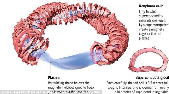 ![]() ![]() “文德尔施泰因 7-X”第一次产生的等离子体,主要由氦组成,达到了大约100万摄氏度的高温。 ![]() ![]() 该系统初次测试时的图像,显示了荧光分支闭合的过程,使嵌套的磁场表面变得可见。 ![]() 在仿星器内,等离子体被控制在外层的磁线圈内,这些磁线圈的真空内室能产生扭转的磁场。 ![]() “文德尔施泰因 7-X”装置内并联环路的电子束,显示出沿着磁场线的轨迹。 ![]() 工作人员正在制作“文德尔施泰因 7-X”的一个内部组件。 近日,W7-X反应堆制造出了一种超高温的特殊气体,持续了十分之一秒。科学家希望,如果反应堆作用时间可以长一些,那将最终为我们带来无限制的清洁廉价能源。12月10日,该反应堆制造出了温度高达100万摄氏度的氦等离子体。 “我们感到非常满意,”参与W7-X运行操作的汉斯-斯蒂芬·博世(Hans-Stephan Bosch)博士在第一天的实验结束时说,“一切都按照计划进行。”下一个任务将是延长等离子体放电的时间,并研究利用微波制造并加热氦等离子体的最佳方法。 研究者称,W7-X装置的设计成功,将有助于核聚变能源最终成为现实。该装置目前放置在德国格赖夫斯瓦尔德的一个大型实验室中。长时间约束超高温等离子体是反应堆设计的“圣杯”,将有可能为世界提供用之不竭的能量来源。 类似W7-X这 样的核聚变反应堆,采用的是两种氢的同位素——氘和氚——的原子,这些气体被注入一个密闭室。接着,科学家添加能量,将气体原子的电子移除,生成等离子 体。这些等离子体能释放出巨大的能量。在密闭室周围环绕着超导线圈,可以产生强磁场。通过电流的引导,强磁场穿过等离子体,使其远离密闭室的内壁。 反应堆最常见的设计称为托卡马克装置(Tokamak),这是一个类似圆形线圈的中空金属结构。燃料在加热到1.5亿摄氏度以上时,能形成高温等离子体。尽管托卡马克装置能理想地约束这种等离子体,但也暴露出一些安全风险,比如当电流故障时,磁场就会立即崩溃。 这种崩溃会导致磁场力的释放,并足以损坏反应堆。在发表于《科学》(Science)杂志的深度报告中,马克斯·普朗克研究所的科学家称,W7-X装置是一个更加实用的选择,可以克服托卡马克装置存在的安全问题。 美国威斯康辛大学的工程师大卫·安德森(David Anderson)说:“托卡马克装置的使用者正在期待会发生什么,W7-X令全世界感到振奋。”在托卡马克装置中,有两组磁场用于约束等离子体,一组环绕在密闭室之外,一组位于密闭室内部,可以引导穿过等离子体的电流。这种设计使密闭室内部的磁场强于外部,等离子体有可能移动到密闭室壁上,导致磁场崩溃。 在仿星器里,等离子体被约束在外部的磁线圈内,这些磁线圈能在真空的密闭室内产生扭转的磁场线,从而使等离子体一直远离密闭室壁。W7-X装置的关键部件是一个50圈的超导磁线圈,高度大约为3.5米。该装置总共有16米宽。 1951年,在普林斯顿大学工作的莱曼·斯皮策(Lyman Spitzer)首次提出了仿星器的概念。然而,由于当时材料的限制,这一想法被认为太过超前。现在,利用超级计算机和新的材料,科学家最终将斯皮策的理想变成了现实。(任天) |