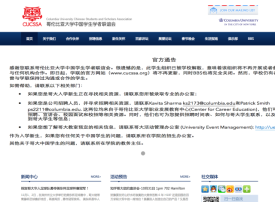 背景新闻:近日哥伦比亚大学中国学生学者联席会官方网站上发布出一篇官方通告,通告中明确告知哥大的中国学生学者联谊会已经被学校官方解散,并意味着该组织将不能再开展与任何其他机构的合作。 ![]() 哥大学联解联事件 新闻一出一时间网上众说纷纭,这是美国常青藤盟校首次以校官方名义解散中国学生学社联谊会组织。哥大究竟发生了什么?这个有着悠久历史的中国学生组织怎么就会突然被校方解散了呢? 分赃?腐败?内讧? 哥大CUCSSA解散的消息公开后各种各样的传闻和猜测都出现了。 曾经作为美国最大的以华人学生、学者为主体的综合性非盈利组织,也是全美最具影响力和知名度的华人组织之一。联谊会成员包括哥伦比亚大学在校的中国学生、学者,在大纽约地区工作、生活的哥伦比亚大学校友以及自愿加入联谊会的华人、华侨,共计2万余人。这样一个举足轻重的华人团体如今的解散着实令人感到惋惜。 记者经过一些列调查试图找出学联解散的真正原因,解散的确是其内部成员向学校举报所致,但这中间究竟发生了什么样的事情,至今还是个迷。目前学联的原高层依然还处于回避状态,主席团对这件事一致采取了避而不谈的态度。 综合各方的说法来看,学联走到今天这个局面可能主要有两方面原因导致: 首先是内部管理问题: 腐败也好内讧也罢,这些传闻并不是空穴来风,都反映出哥大学联内部曾经存在管理问题。 但不可否认的是,学生组织内部的斗争和官僚问题是在北美各大学华人学生组织中普遍存在的现象,也不乏一些大学的CSSA组织被解散的案例,例如剑桥大学CSSA早前就有解散传闻。很多留学生也纷纷表示认为自己学校的此类学生组织盈利目的较强,官僚气氛浓厚。有一些网友认为中国学生因为缺乏严格的管理制度,按照自己的意愿管理久而久之就造成了内部混乱。 其次,随着进今年赴美留学生人数的激增,学生会工作压力增大不少,更多的留学生组织倾向于以营利为目的来管理经营,造成的结果是本着结交朋友想要找归属感的新生们加入之后并没有得到想象中的家的感觉,反而在忙于为组织奔波争取利益。 第三点是失去校方支持:CUCSSA成功举办了诸多大型活动包括新生关怀项目,哥伦比亚大学中国展望论坛,哥伦比亚大学百家讲坛,春节晚会以及各类招聘会。在哥大学联势力逐渐扩张的同时,逐渐变成了一个相对独立的团体逐渐脱离校方控制,也受到了政府的大力支持,也有传闻哥大学联一度与一些国内行政部门频繁合作。一些大型的招聘和其他活动令学校相关部门失去了机会。 当然,在没有任何确凿的证据之前,记者也只能推测到这里。因为在发了诸多邮件咨询校方学生组织管理部门之后,目前并么有得到任何的正面回应。 在哥大学联解散的消息公开后,记者近期随机采访了许多哥大中国学生对CUCSSA解散的看法,包括本科,硕士,博士及一些访问学者。 令记者略感惊奇的是并没有多少人表现出对哥大学联的强烈关注,普遍态度是有点惋惜,但并不是特别在意。只有一少部分本科学生对加入学联感兴趣。 很多被采访者认为在哥大学业紧张的环境下其实没有太多精力关注这些社团活动,加上哥大本身除了CUCSSA之外还有非常多其他的华人学生社团包括CUasia,未来中国社,亚洲学生联盟等等。另外因为身处纽约大都市,哥大学生本来就有非常多的各类活动可以参加并不一定只有依靠CUCSSA来充实自己的生活。 对于哥大学联是否有灰色收入的问题,大家也采取摸凌两可的态度,都是靠听说一些传闻认为可能确实有灰色收入,但因为跟自己关系不大所有无所谓。现在也没有任何确凿证据证明哥大学联存在灰色收入问题。 对于大部分被采访者来说,最可惜的是失去了CUCSSA的论坛这个用来找租房和买卖二手家具的渠道。当然也有一些曾经的学联成员对学联有着比较深的感情,名为茶叶蛋的笔者作为曾经学联的骨干就连续写了两篇文章阐述自己对学联的看法并呼吁恢复学联,受到了广泛关注。无论这些声音背后究竟有什么目的,作为学联曾经的一员站出来为学联发声难能可贵。 尽管众人对哥大学联抱有各种各样的态度,但不可否认的是哥大学联的确曾经为华人群体做出过诸多贡献,为哥大中国学生赢得了不少机会和荣耀。据知情人称,哥大学联正在筹备向校方请诉恢复学联的事宜,但因为现在还在筹划阶段,并没有透漏细节,所以敬请期待。 后记: 纵观哥大学联解散事件,反映出留学生组织在各个大学一些通病,一个庞大的学生组织体系到底应该由学校和组织高层怎样有效地配合和管理才能真正切实的服务到留学生群体?这是一个需要广大学校及学生团体共同反思的问题。本报驻纽约记者报道(来自:CollegeDaily) |