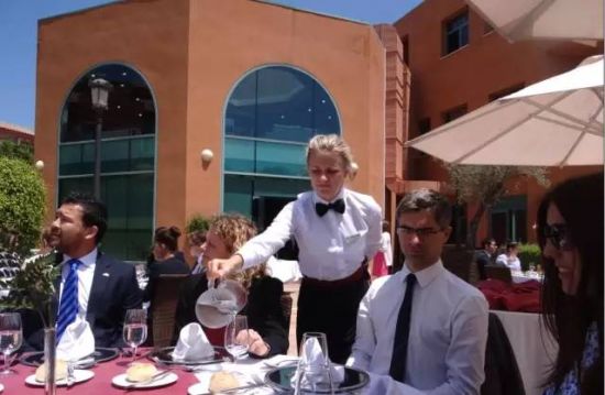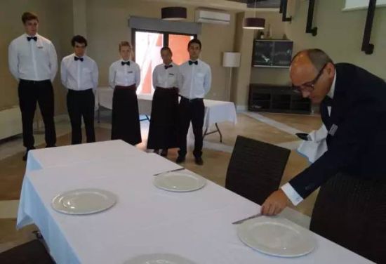 位于西班牙南部海边小镇马贝拉的理诺士国际酒店管理学院(Le Roches Marbella)在西班牙本国排名第一。 ![]() 理诺士国际酒店管理学院 理诺士国际酒店管理学校与美国纽约大学相似,后者在阿布扎比和上海建立了分校区。而理诺士国际酒店管理学院在瑞士日普鲁士、西班牙马贝拉、中国上海、以及约旦安曼均开设校区。其中瑞士主校区在全球索福瑞2013年发布的榜单中,名列全球最佳酒店管理学院第三名。 与瑞士学校常见亚洲脸不同,西班牙的这所学校里86%为欧洲学生,亚洲学生仅占4.3%。 ![]() 中午休息时间,教学楼大厅进门处几位学生或休息,或交流 学校所在的西班牙海滨小镇马贝拉是欧洲人最青睐的度假胜地之一,其奢侈品年销售量,在西班牙排名第二,仅次于巴塞罗那。 在这样一个非常欧洲化的“小联合国”读书,究竟是怎样一种体验?毕业生的出路如何?请看本报记者的探访记。 体验一: 每天都要穿制服,好像回到寄宿高中时代 理诺士国际酒店管理学校马贝拉分校,一共只有540位在校学生,252名寄宿生,全部学生生活在一栋大楼内。 走进学校,你会觉得它既有点像酒店,也有些像高中,因为每个学生全部都穿着制服。 “天气再热一些,我们允许学生脱掉西装外套,但男生依旧需要系领带或领结。”学校的学生服务及运营总监J. Mmauuel Soler告诉我。这位1999年从这所学校毕业的资深校友,如今已成为学校的校内“总管”。 ![]() 学校的学生服务及运营总监J. Mmauuel Soler,他的背后是一片校园内的高尔夫球场 Soler介绍说,学校的酒店管理本科专业共分为7个学期,其中第3和第5学期为校外实习期。 “有些第5学期实习回来的学生,感觉想摆酷,故意不穿校服,我们给予的惩罚是,每天早晨罚他们与大一新生一起早点名。” 原来,跟美国一些古老私立寄宿高中设置早点名一样,在理诺士国际酒店管理学校马贝拉分校的大一新生,每天早晨8:30必须集合报道。不一样的是,美国高中生通常在教堂集合,而在这所学校,集合地点换成了餐厅。 ![]() 记者探校当日正赶上早点名,老师在点名同时还会检查学生的着装 学校对学生的纪律要求也相当严格,如果发现学生吸毒或者打架,立即开除。 “尽管我们是一所非常小的学校,但对于违反校规的行动,我们采取‘零容忍’。”学校执行总裁Carlos Diez de La Lastra Buigues介绍说,每学期开学,学校会给学生6分纪律分,但凡发现学生不穿校服,或逃课,均会扣除0.5分或1分,一学期过后,纪律分低于4分者,必须开除。 去年,学校开除了4名学生。 ![]() 学生在课堂上课 体验二: 让平时粗枝大叶的你,也能变成“细节帝” 除了正常的教室外,学校把一些教师布置成五星级宾馆的前台、客房、清洁室,,非常逼真。 第1学期,学生将学习客房服务与管理,包括如何将床单折出漂亮的直角,不同的地板瓷砖应该用哪些不同的清洁剂等。 学校负责招生的老师告诉我,亚洲家长通常会在一开始质疑:我们付了那么多钱,难道就是让孩子来学打扫的吗?他们应该做更高级的事情! “我们不是培养服务生或厨师的学校,而是教授管理的商科学校。但正是通过一些操作性很强的细节学习,才能掌握酒店管理的第一步。” ![]() 学生被要求折出床单的折角 有时候,老师在实践考核中,会把模拟客房的电视机插头拔除,看看学生是否能看出破绽,最终帮助客人解决问题。 “关注细节,是我们必须掌握的标准,不容讨论。” 校内总管说。 在参观过程中,学校的餐厅总管给记者演示了餐桌铺设的过程。这是学校大一新生第1学期的必修课。通常,在一家奢华的五星级酒店,铺设一张四人用的餐桌,需要花费30分钟。 ![]() 老师正在向学生示范摆盘的门道 真是不看不知道,一张小小的四人餐桌,摆盘却有大学问。 比如,在桌子上摆盘时大拇指必须翘起不能碰到盘子,摆放刀叉时需从里到外(与客人用餐时的使用顺序相反); 所有刀叉的起始点需在一条直线上; 调味料瓶子必须全部装满; 每个学生至少需要掌握5种餐巾的艺术折叠法。 在授课过程中,他有时会故意给学生出难题:看看我哪儿出错了?四五个学生仔细围绕餐桌端详半天,异口同声地回答:“No Sir”。 “难道没有看出来,右下角的边盘和主盘,我故意把两者之间距离放近了,和其他几个主边盘的距离不一样吗?”老师就是这样,一步步引导学生注重餐盘摆放的每个小细节。 大一第2学期,学生将学习厨房服务课程。曾在伦敦希尔顿饭店担任8年主厨的英国人Chris Burton目前担任学校厨房总管,带领其他7位专业大厨展开教学工作。同时,学校三个餐厅每天中午和晚上为全校学生提供的餐食,全部由学生自己烹饪完成。 除此之外,学校还会教学生学习酒文化和雪茄文化,比如开胃菜、主菜、甜点需搭配哪些不同类型的酒等。 ![]() 学校设有专门的品酒课,还有雪茄文化学习。学生自发成立了品酒俱乐部 在Chris看来,烹饪不仅仅是一门技能,更是一场考验组织能力的艺术。 探访日,Chris带领大家体验了一堂香料辨认课。他花了大约十五分钟,向记者介绍包括罗勒、葱、香菜、莳萝、月桂叶,鼠尾草等12种香料,以及常见使用方法。 在让记者亲手触摸、用鼻子感受后,他选择了一位志愿者进行课堂效果测试。短短半小时,志愿者蒙眼可以回答出大约七八种香料的名字。 ![]() Chris老师正在教记者团的成员辨认12种草药 Chris说:“我们的学生将来不会成为主厨。但通过熟悉食