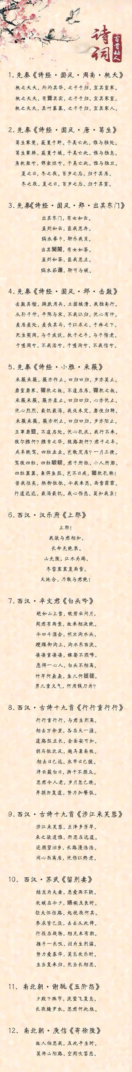 “愿得一心人,白头不相离”,“桃之夭夭,灼灼其华”,“闻君有两意,故来相决绝” 都是经典诗词,首首温暖,篇篇动人。收下,学习!