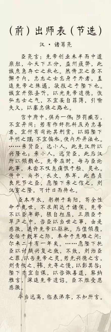 ①杜牧的《阿房宫赋》;②王勃的《滕王阁序》;③诸葛亮的《出师表》;④荀子的《劝学》;⑤李密的《陈情表》;⑥苏轼的《赤壁赋》;⑦周敦颐的《爱莲说》......那些年我们熟烂于心的12篇经典古文,你还能背出几篇?