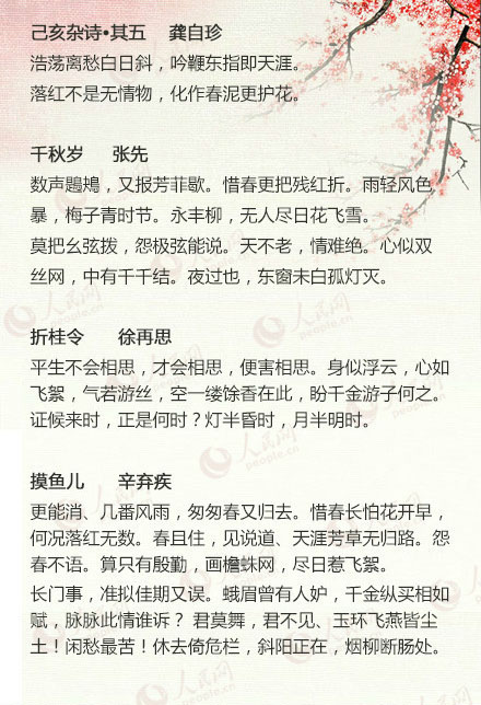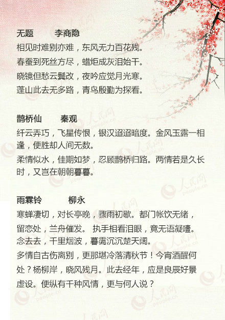 “天不老,情难绝。心似双丝网,中有千千结”;“此去经年,应是良辰好景虚设。便纵有千种风情,更与何人说”……越回味,越觉得意境无穷。哪首曾给你带来触动?