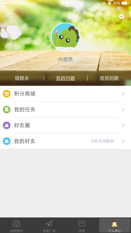 4、个人中心(错题本、我的问题、我答的题、我的好友等)