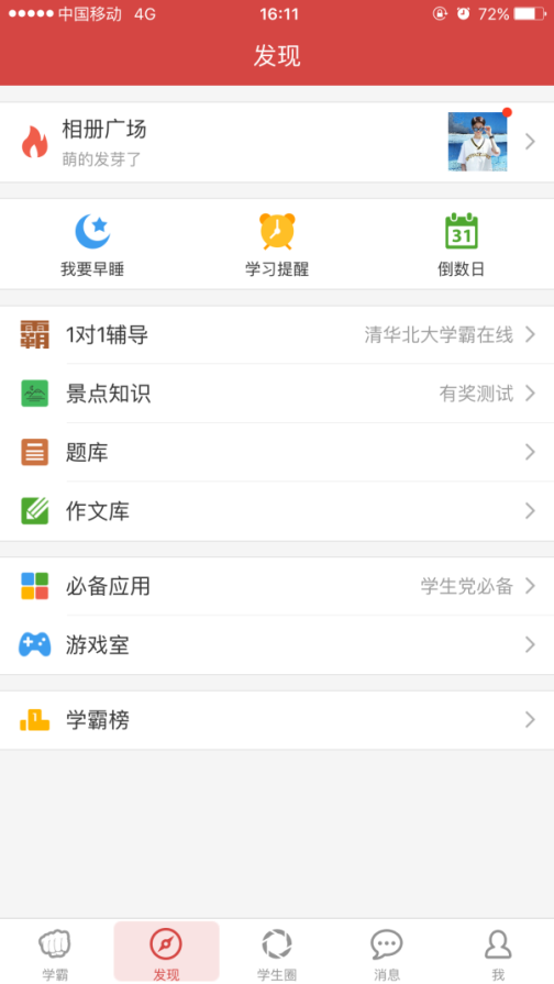 我要当学霸 简介:《我要当学霸》是一款具有划时代意义的产品,海量的临床试验表明,《我要当学霸》可以有效提高学习效率,杜绝边学边玩儿手机的情况,安全无副作用。 一、模块 1、学霸:学习监督、作业问答、资料、任务清单 2、发现:相册广场、学习提醒、相关辅导、其他应用、学霸榜 3、学生圈 4、消息 5、我(个人中心) 二、功能特色 1、基本功能 学习监督:设置学习时长,启动学霸模式,手机将被监督锁定。 我要早睡:设定早睡时间,到点后手机将被限制操作,杜绝「睡前玩儿手机」。 我要早起:设定起床时间,软件会用严厉的方式叫你起床,杜绝偷懒赖床。 其他功能:倒数日、每日学习提醒、必备应用推荐等。 2、软件特色 严厉的监督:学习的时候玩手机,软件会有严厉的提示,如 “不好好学习,一辈子单身!”、“请不要放弃治疗,好好学习你还有救!”。 残酷的惩罚:放弃学习,将会受到残酷的惩罚,惩罚分为两种。一种是在社交网络上发令人尴尬的状态,被好友鄙视,如“我在学习的时候玩手机,为了惩罚自己决定请大家吃饭 。” 另一种是强迫手机播放令人尴尬的音乐,如被广大网友誉为神曲的《爱情买卖》、《最炫民族风》等。 三、下载量(统计时间为2015-10-05) 1、百度手机助手:685万次下载 2、360手机助手:789万次下载 3、豌豆荚:168万次下载 四、以下是内容屏幕截图及使用流程 1、点击“我要当学霸”软件,选择一个账号登录,界面如下: ![]() ![]() ![]() ![]() ![]() ![]() ![]() ![]() ![]() |