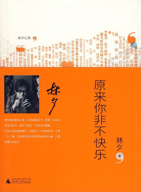 ![]() 内容简介 《原来你非不快乐》系林夕先生2007年至2008年写作的关于人生与社会生活的作品专集——围绕“快乐/不快乐”的主题,内容涉及心境、工作、时事、社会民生、生命等等多个方面的思考。用他自己的话来说,就是直面“不快乐”,将苦痛解剖,从而找到真正的长久的快乐,以安稳人生,改塑生活的面貌和品质。文字上承袭林夕词作一向的精致风格,蕴涵与晓畅兼备,殊值品味。 林夕在致内地读者的序言中说: “得怀着感恩的心情,在因缘际会下,我第一本在内地发行的书,是关于快乐/不快乐的课题”,“在如今的金融海啸下,如能让一个读者找到一个救‘心’圈,在浪奔浪流中得到浮起来的力量,已是我最大的快乐。” 《原来你非不快乐》内地版修改内容很少,且均经过林夕先生同意。 作者简介 林夕,原名梁伟文,生于香港。毕业于香港大学文学院,主修翻译。曾任港大中文系助教、《快报》编辑、亚洲电视节目创作主任/节目部副经理、音乐工厂制作总监/总经理、商业电台广告创作及制作部主管/商业电台制作创作顾问/商业电台顾问。同时写歌词、写稿。近来自修快乐学,学快乐。 ◆关于林夕 林夕系世界华人音乐界第一作词人,其歌词作品累计3000余首,获得奖项高达数百项,无人能出其右。他是王菲、陈奕迅、杨千嬅的御用词人。近几年风行大陆的词作有:王菲《红豆》、陈奕迅《爱情转移》(电影《爱情呼叫转移》主题曲之一)、林宥嘉《病态》(台湾星光大道第一季第一名)、方大同《歌手与模特儿》(香港乐坛新四小天王),且为唱红全国的北京奥运主题曲《北京欢迎你》填词。该词以浓厚的民族民间特色,展示了中华古国的热情与开放,一咏三叹,使林夕成为2008年中国最火的作词人。 同林夕长期密切合作过著名歌手有:张信哲、王菲、郑秀文、陈慧琳、陈奕迅、谢霆锋、古天乐、古巨基、成龙、林忆莲、张国荣、梅艳芳、张敬轩、梁汉文、陈小春、林一峰…… 林夕已在香港出版的作品(歌词之外) 《某月某日记》 《即兴演出》 《盛世边缘》 《似是故人来》 《小城无故事》(合著) 《曾经》 《我所爱的香港》 《原来你非不快乐》 林夕专栏: “颠倒梦想”专栏香港《UMagazine》2006年至今 “十方一念”、“也无风雨也无情”专栏香港《明报周刊》逢周六刊登2006年至今 “如是我闻”专栏香港《东周刊》逢周二刊登2006年至今 2009年林夕先生还将在《南方都市报》开设专栏,周一至五提供500字。 |
