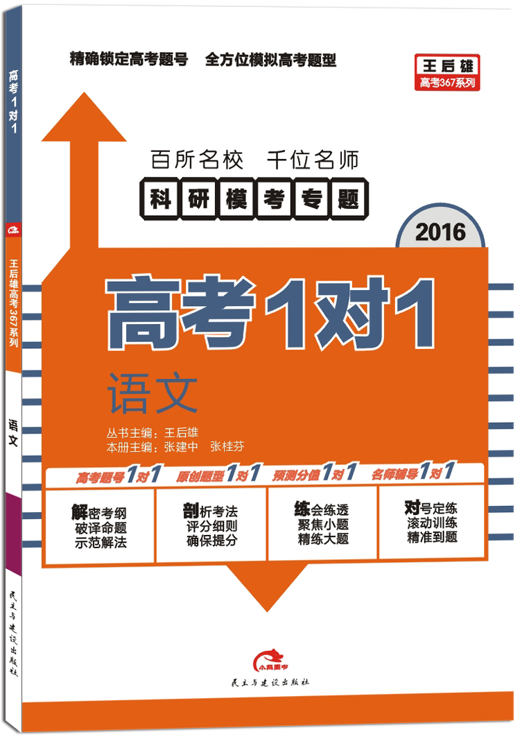 ![]() 1、全国首创2轮集训新模式,按照高考试卷中的对应题号针对性训练,颠覆传统训练方法,极大提高试题利用率! 2、高考要考的就是我们要练的。以考定练,权威设计仿真高考的典型新题,必能收到做一当十、一卷冲关的功效! 3、源于全国100所名校1000名名帅的原创智慧,全新试题才能达到提升学生应试能力的真实效率,确保训练达到预期提分效率! 图书特色 高考题号1对1:解密考纲,破绎命题,示范解法 原创题型1对1:剖析考法,评分细则,确保提分 预测分值1对1:练会练透,聚焦小题,精练大题 名师辅导1对1:对号定练,滚动训练,精准到题 内页展示 ![]() ![]() 目录 ![]() ![]() 正文 丛书目录 《高考1对1》:语文、数学、英语、物理、化学、生物、思想政治、历史、地理 丛书主编 王后雄,湖北省特级教师,教授,博士生导师,华中师范大学考试研究院院长,化学教育研究所所长,中国教育学会考试专业委员会常委。小熊图书总主编,“X导航”教育研发中心主任。主编和编著教材及著作30多部,发表CSSCI核心期刊论文130多篇,主持和参与10多项国家及省部级考试科研项目。曾获“全国劳模”、“人民教师奖章”、“全国‘十杰’教师”等荣誉称号,系享受国务院政府特殊津贴的教育专家。 概念引申:王后雄高考367系列 3轮备考 精心构建高考一、二、三轮全程解决方案,考纲解析类、考法训练类、高考冲刺类系列联动,创新三阶段备考体系。 6大书系 《高考完全解读》《高考完全学案》《高考完全测评》《高考1对1》《高考冲刺押题》《高考考前秘阅》6大系列突破高考,确保各阶段提分目标。 700分目标 致力于精准、独到、准确把握高考命题趋势,提供“夯实基础、系统提升、专项突破、终极预测”的700分目材料精准设计。 电子书阅读 小熊教育网—>电子图书—>试卷类 |