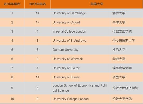 《泰晤士报》与《星期日泰晤士报》首次联合发布了2016年英国大学排名前20的学校,萨里大学跃进了前十,萨塞克斯大学也挺进了前20。如果有同学正在物色英国的大学,可以作为一个参考: