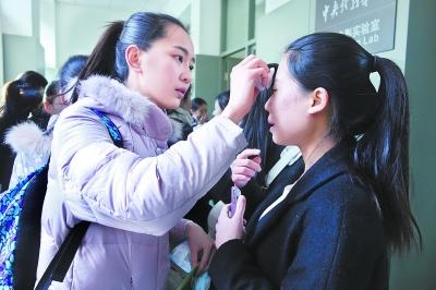 ![]() 2015年“艺考”日前拉开大幕。中央戏剧学院、北京电影学院、中国传媒大学今天同时开始艺术类本科专业测试。报考三所学校的考生达八万多人次,表演专业和主持专业仍然最受考生关注,其中中央戏剧学院表演专业的考录比为108比1,广播电视节目主持专业的考录比也达到了147比1;中国传媒大学表演专业考录比更是高达172比1。 中戏:进场前考生忙卸妆 上午8点记者来到位于南锣鼓巷的中央戏剧学院。此时等待入场的考生已经排起了近百米的长队。不少人口中轻声念着准备好的台词。今天虽然阳光明媚,但是气温并不高。有的考生为了配合自己的表演内容,换上了轻薄的裙装,在冷风中冻得直哆嗦。“没想到北京刮起风来这么冷。”穿着短裙丝袜的一位福建籍女生感慨道。 今年中戏广播电视节目主持专业首次在简章里明确要求考生“不得化妆,着日常服装”。在考场外,考务工作人员不断提醒考生“千万不要化妆,一旦被发现,可能会影响考试结果”。9点左右,走出考场的考生急着跟排队的同伴打招呼:“老师真的拿纸巾擦考生的脸,检查化妆情况。”听到消息,不少考生赶紧开始卸妆,“早上起来化了一个小时,既要效果好又不能让老师看出来,现在白折腾了。”一名女生无奈道。 对于考生化妆的情况,中戏院长助理郝戎和教务处处长张娜表示,考生报考表演和主持专业,要展示的是自己的本来素质,而不是“加工过”的面貌。郝戎坦言,对于考生化妆“原来不是事儿”,基本的淡妆是允许的,但近年来不少考生化妆已经升级到造型的地步了,甚至出现了专门的“考试妆”。所以在表演测试中,贴睫毛、鼻侧影等化妆是绝对不被允许的。 记者了解到,中戏今年共计划招收本科生580名,实际报名了27394人次,因为今年每人限报三个专业,所以报考人次较往年有所下降,人数则基本持平。热门专业方面,有5419人次报考表演专业,考录比为超过108比1;3670人次报考广播电视节目主持专业,考录比超过147比1。 传媒大学:理个“播音头”要排队 今天,传媒大学校园里到处是带着憧憬眼神的考生,新一季艺考又开幕了。 小马昨天从廊坊进京,早上7点,他急匆匆地赶到传媒大学内的理发馆,想做个“播音头”。“太贵了!居然要两百块钱!我觉得顶多值三十,也就打点摩丝,弄个造型。”虽然这样抱怨,他还是排进了等候的学生队伍,一直等到7点半,做了头发,换上了带亮片儿的白衬衣。 “我妈年轻的时候特别喜欢文艺,她鼓励我考北京的大学。我参加的表演训练班老师就是传媒大学的,所以我也来考这个学校。”小马报考了传媒大学最热门的专业“播音主持”。上午10点,他走出面试考场,感觉发挥得还不错。“老师让我赶紧补张体检表。”怀着满满的希望,小马奔向了医院。 跟许多由父母陪伴的学生不同,小雪独自一人拉着小行李箱,穿行在传媒大学的几个考场,箱子里装的是服装和道具。“上午考表演,下午要考播音主持,我想换套正装,所以自己带着。”小雪说,今年已经是她第二年参加艺考了。 “我从小就喜欢表演,喜欢看电影和电视剧。但父母不赞成我走这条路。去年我偷偷参加了上戏的艺考,已经进入最终名单了,但爸爸妈妈不许我填这个专业。最终我去年没上任何大学,选择了复读。今年家人想通了,都支持我,我可以放心大胆地考了。” 中国传媒大学招办的统计显示,今年学校23个艺术类本科专业共有3万人次报名,报名人数排在前三位的专业为:播音与主持、表演和广播电视编导。其中表演专业报名人数4479人,比去年增加了200多人,但计划录取人数与去年相同,为26个。报名和录取比例为172比1。 表演专业相关负责人介绍,从前几年的毕业生情况看,表演专业学生毕业后直接从事表演事业的约占40%,从事相关职业的约有20%,有相当一部分学生毕业后“转行”,与“表演”再无关联。 电影学院:报考人数增加30% 早上不到8点,寂静了一个寒假的北京电影学院,校园里又重新热闹起来。今天是北京电影学院2015年度招生考试的第一天,参加录音系和动画学院考试的学生们,早早来到考场门前,在寒风料峭的冬日清晨,静待着自己梦想的起航。 “天儿太冷了,赶紧把孩子们领进去吧。”离规定的入场时间还有一会儿,一位操着东北口音的考生家长开始心疼起自己的孩子,“在马甸桥订了酒店,本来是怕堵车,早早儿地就打车过来了,没想到一路畅通,不到10分钟就到了,白白让孩子挨了冻。”而腋下夹着准考证文件袋的孩子却是满脸不在乎,一边哈着热气,一边啃着从校门口买来的大煎饼,还不时跺跺脚,安慰着妈妈,“没事儿,那么长时间都等了,不差这一会儿,大煎饼吃得我挺暖和的。” 虽然是来自天南地北,不过,家长们一扎堆儿,谈论起备考经来,立马成了老相识。“我们初三就从山东老家过来了,孩子在这儿上课,我们自己在家过年也没什么意思。过来陪着孩子,还放心些。”另一边的考生们,也热络地交换着考前的紧张和兴奋,“我报了电影录音和音乐录音两个专业,多报一个命中率总能高些吧?”一位报考了电影录音的考生告诉记者,虽然专业的方向性比较强,在别人看来有点儿窄,但总归是个技术活儿,“技多不压身嘛”。 据了解,今年北京电影学院报考人数达24626人次,较去年的18985人次增长了5641人次,增长幅度接近30%。其中美术系、文学系和表演学院报考人数分别增加了千余人次。据相关负责人