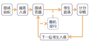 | 1. 结构化面试流程 第一步,面试组织,这一步由自主招生学校负责组织,考生需要注意的是,要提前到达考场,熟悉考试环境,弄清自己在哪一个组,所在组有几个考生,所在的考场,考试时间等基本信息。 第二步,抽签入场,考生整理好自己的心情和形象,以饱满的精神状态和积极向上的形象去面对评委。 第三步,面试答题,考生要注意走姿、坐姿、面部表情、手的放置、眼神等等细节。考生在正式答题时,如果是评委念题一定要注意听清评委的问题,尤其是面对评委的随机提问,一定要沉着冷静,,理清思路,再开口答题。如果是自己抽题,在答题前一定理顺思路和答题要点。答题时注意声音洪亮、吐字清晰、表达流畅、充满自信,给评委一个良好的印象。 第四步,考生退场。保持进场时的状态,和评委道别,将自己东西都带齐、拿走,将凳子归原位。 第五步,计分审核。考生拿到结果,进一步准备下一步工作。 结构化面试流程图 ![]() 2. 无领导小组面试流程