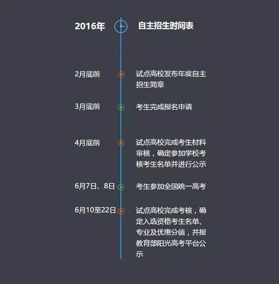 参加2016年自主招生的考生们请注意,以下是参考2015年自主招生制定出了2016年自主招生时间表,供考生们参考。