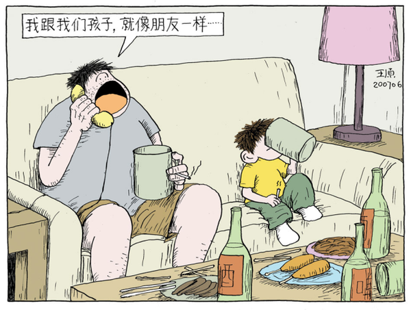 人们常说,孩子是父母审视自己的一面镜子。 日常生活中,父母的言行举止、喜怒哀乐和价值观等,无不被孩子视为“成长范本”般有样学样。 分享知名漫画家王原创作的一组名为《父与子》的漫画。 王原曾说“漫画是具有逻辑性的喜剧”。那么就让我们在十个或尴尬或温馨的父子冲突之喜剧瞬间,体会到底应当如何和孩子相处吧。 |