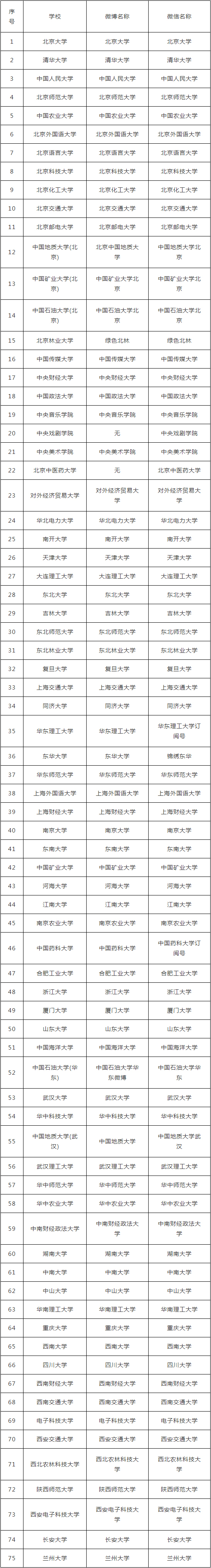 教育部直属高校官方微博微信开通情况(2016年1月)