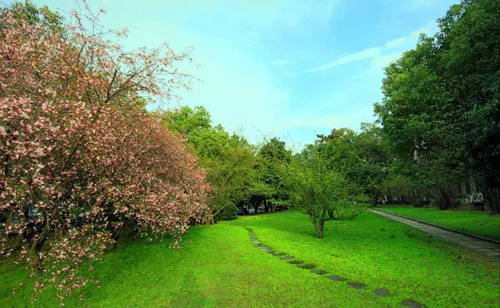 樱花大道下面的那片美轮美奂的林子就是武大的情人坡,和繁华的樱花大道相映成趣的是这里的曲径通幽。最美是深秋时,梧桐落叶和金黄的银杏叶仿佛给情人坡铺上了一层地毯,美得令人眩晕。
