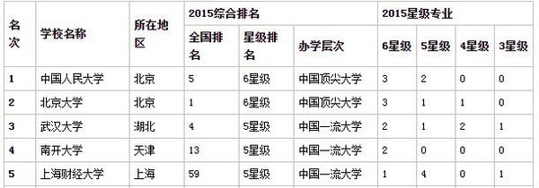 在经济学专业中,最好的五所学校都有经济学专业的重点学科星级专业 1.中国人民大学 中国人民大学经济学院成立于1998年,其最早历史可以溯源至1946年华北联合大学设立的财经系,1947年改称经济学系。经济学院享誉全国,实力强大。在2004年、2008年、2012年连续三次国家重点一级学科评估中,理论经济学、应用经济学名列全国第一。作为中国经济学教育与研究的理论重镇,这里创造出大批高质量、具有重大影响的优秀科研成果,在宣传和研究马克思主义经济理论、引进与研究外国经济思想和现代西方经济理论以及创建中国经济学学科体系、探索改革开放的理论与政策、培养经济学理论和实践人才等方面,始终保持在国内的领先地位。 2.北京大学 北京大学经济学院共计承担国家社会科学基金项目、教育项目,北京市哲学社会科学规划基金24项。2002年,北京大学经济学院成为北京大学文科院系一级获得国家社会科学基金项目最多的单位。经济学院科研课题研究经费超过1700万元,是国内综合性大学经济学院中为数不多的科研经费超千万元的学院之一。 3.武汉大学 拥有四个一级学科:即理论经济学、应用经济学、工商管理、管理科学与工程,四个一级学科全部具有一级学科博士学位授予权并都设有博士后科研流动站。学院有一个一级学科国家级重点学科, 七个二级学科国家重点学科;全部学科都是湖北省优势或重点学科。“发展经济学的新发展与经济全球化”是“211工程”重点建设项目,“中国经济发展与国际 竞争力”是“985工程”创新平台。 4.南开大学 南开大学经济学在大陆举足轻重的地位。拥有一级学科国家重点学科:理论经济学、应用经济学;二级学科国家重点学科:区域经济学、金融学、产业经济学、国际贸易学、财政学、数量经济学、国民经济学、劳动经济学、统计学、政治经济史、经济史、世界经济、西方经济学、人口资源与环境经济学、经济思想史、国防经济等众多优秀学科 5.上海财经大学 1951年4月至1953年8月,复旦大学、交通大学、厦门大学、大同大学、圣约翰大学、沪江大学、东吴大学、光华大学等20余所高校的财经系科相继并入学校,上海财政经济学院遂成为华东地区唯一的财经高等学府,名士云集,群贤毕至。 |