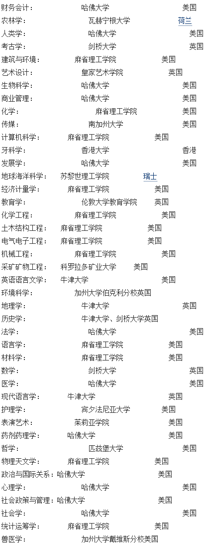 据英国《每日电讯报》报道,QS世界大学学科排名榜中,英国高校在数学、英语、历史等学科上的表现要领先于其他国家的高校,而美国高校在大学学科排名榜上所占数量最多。 ![]() 在分析调查了全球研究机构中的强势学科后,QS按照学科总结了42项学科第一的大学,其中英国高校共占8所。 英国的牛津大学占四个学科第一,剑桥大学占三个。 然而,这项排名中所占学科第一数量最多的高校来自美国。哈佛大学及麻省理工学院共在24项学科中问鼎。 这份榜单是由QS机构向76798名学者和44426位雇主进行咨询调查,并结合2850万文献资料和引用数据后分析得出的。 在各个学科排名的大学榜单中,美国高校在学科排名中拔得头筹的大学共有8所,学科排名位居第二的大学有16所,学科排名位居第三的有21所。 QS信息部负责人Ben Sowter表示,尽管在按学科排名的大学榜单中,英美高校所占有的强势专业最多,但仍有不少其他国家的高校在专业领域上呈不断发展的趋势。 澳大利亚、南非、芬兰、巴西、中国和瑞典等国家的高校,在按学科排名的大学榜单中也能跻身前十。如表演艺术专业前100所高校就来自27个不同的国家和地区,而矿物工程专业前100所高校来自26个不同的国家和地区。 以下是学科排名位列第一的大学: ![]() (实习记者:郭婷婷 审稿:吴婷) |