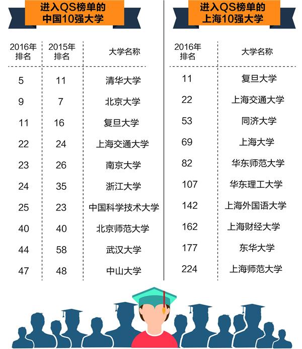 ![]() 来源:新民晚报新民网戴佳嘉 制图 近日,全球高等教育分析机构QS全球教育集团发布了2016年版《QS亚洲大学排名》。在这次最新排名中,新加坡国立大学、香港大学、南洋理工大学、香港科技大学排名亚洲前4。清华大学成为中国排名最高的学府,在亚洲20强大学中进步最大,一年提升6名,上升至亚洲区第5名,超过了排名第9的北京大学。复旦大学也出现明显进步,在去年的基础上上升5位,排名亚洲第11位。 今年QS新的排名在综合考察一个大学在亚洲区的科研、教学、毕业生就业、国际化、学术影响力等9个指标的基础上,新增5%的拥有博士学位教职工的指标。 最新排行显示,中国高校在该亚洲排名中占据统治地位,共有124所学府进入亚洲前350。其中,中国大陆82所,香港7所,台湾34所,澳门1所,远远超过位居第二的日本(74所)和第三的韩国(54所)。26所中国大陆大学进入亚洲百强大学,比去年新增1所。82所中国大学进入亚洲大学排名,比去年新增8所。 QS全球教育集团中国总监张巘博士分析认为:“中国作为世界高等教育的领军人,在科研、创新、教学、就业、人才培养、和国际化战略的所有核心方面位居亚洲领导地位,成就卓越,得到了国际社会的长期广泛认可。中国政府应该进一步加大对教育的投入力度,不断扩大并深化教育体制的全面改革,给予高校更多的自主权,积极鼓励中国大学走出去,开展更多带来重大全球影响的国际合作,吸引世界范围内最优秀的人才来华学习、实习、工作、创业,创建更多世界一流的大学和学科。”(记者 张炯强) |