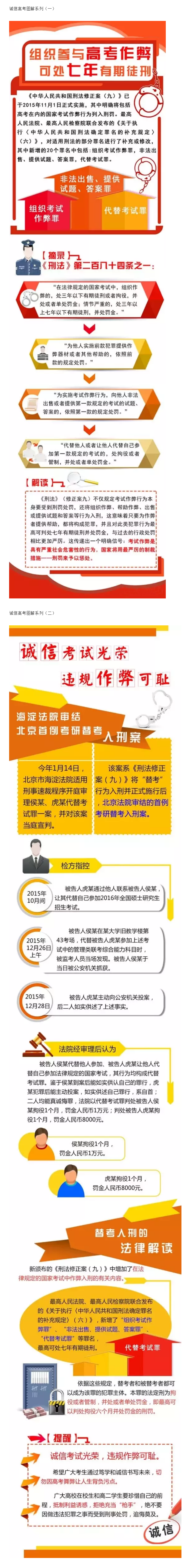 2016年高考进入倒计时,希望大家面对高考放松心情、坦然应考,同时也希望考生“遵规守纪、决不作弊,用诚信书写自我”。一起来看看图解“诚信高考”,好好学习一下吧!