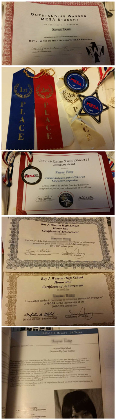 近年来国内出现了一批又一批的小留学生赴美读高中,人们通过媒体了解这批低龄留学生的机会并不多,网络上与之相关的常常是各种对于低龄留学利弊的辩论、或者是从家长角度分享的美高生活,偶尔还夹杂一些夸张的报道,诸如“美国中学生作业中国教授看了也傻眼”“真实的美高生活:4小时睡眠,4杯咖啡,4.0的成绩”…… 那么成千上万个中国孩子分散进入到美国不同地区不同水平的高中后,究竟体验的是怎样的留学生活?一位正就读科罗拉多州立大学的中国学生Sammi,透过环球网向网友们分享了她的美高经历。 “我来美国是妈妈决定的,因为她觉得中国竞争太强,我不会有好工作或考到好大学。”2008年,随着母亲大手一挥,确定了全家未来的教育工作生活方针,Sammi中断了在国内准二线城市一所中等高中枯燥无味的高一课业,举家移民美国科州。一周后持绿卡的Sammi免费进入了当地一所高中开始了美高生活。 “我所在的高中是一般的高中,因为体育活动我们常输,也在穷人比较多的地区,但是教育什么的都很好。” Sammi对自己的高中还是比较满意,但在融入的过程中还是遇到了一些麻烦:“我刚开始语言不好,不懂也不能融入他们的social norms,就是一个没礼貌的外国人。但是融入以后就开始参加各种活动,认识各种有趣的人。” 融入了当地的社交规则只是美高生活的第一步。接下来Sammi的时间很快就被紧凑的学习和课外活动填满。 Sammi一天的安排大致如下:早上8点上课,下午3点放学。一节课50分钟,课间有7分钟时间,只够小跑去locker取书、换教室;中午有1小时时间用于吃饭。这样紧巴巴地到了下午3点放学,马上又要投入约2小时的活动训练,如果要参加比赛的话训练时间还要再延长。至于晚上的时间则有相当的弹性,因为这完全取决于你选择了什么课程。 关于美国的中学生活,国内常常是两种印象,一种是轻松学,快乐玩,另外一种则是比国内还要艰苦,功课做到半夜,还要应对各种课外活动。之所以会产生这两种巨大反差的印象是源于美国课程的分层设置:普通课和honor课(荣誉课程),学生是否愿意做“有挑战的选择”,挑战荣誉课程,将直接影响到是否能够进入更好的大学深造。“honor课就是学霸在读的。拿honor课还每科拿A(申请大学时)就是你选择学校而不是学校选你,奖学金想申请多少就申请多少,当然课外活动也很重要,因为有体育类的奖学金或科学活动类的奖学金,我是后者。”为了取得更高GPA,Sammi选了一半的荣誉课程,功课忙到深夜也就不足为奇了。 周末时间Sammi也没有办法完全休息,需要在各种课外活动之中来回奔波。众所周知,美国大学在挑选学生时,不仅看学习成绩同时也要看学生的活动能力。而课外活动绝非我们想象中的“打酱油”就能混过关,追求“专业性”是美国学校对待课外活动的一贯传统,没有谁在课外活动“走过场”。 Sammi参加了包括日本围棋俱乐部在内的三个协会,忙得团团转,同时也收获了不少奖项。她以过来人的经验向记者推荐:“美高很忙的,要去好大学,除了学习、写功课、准备考试,你还要参加活动,最好参加你擅长的。我最推荐运动类,因为能让你身材变很好,能拿奖就更好了,这样申请奖学金时你就有东西可以写,而且履历表也会比较好看,得奖学金和进入好大学机会高。” 许多家长常常把上美高当做进入美国名校的一条捷径,但经历了这个过程的Sammi却并不认为:“并没有很便捷 ,只是真实地在体验美国高中生的苦和压力”。但不得不说,身在美国的她确实享受到了某种程度的便利。Sammi可以常常通过各种活动比赛的契机参观各个大学,比对他们的优势劣势,上网查询录取条件申请要求以及奖学金发放情况,这比在国内全凭网络搜索要直观得多。此外4年的时间锻炼了听说读写的能力,对融入大学课业有很大的帮助。更为重要的是,提前适应了当地的社交规范,让Sammi在进入大学以后享受到不少的好处:“我觉得social norms 很重要,毕竟你懂了就不会让人觉得你很没礼貌,因为没人喜欢不礼貌的人,人缘差,某些机会可能就错过了,特别对老师之类的人来说,他们喜欢你的话会给你很多帮助哦。” 在采访的最后,环球网记者问Sammi,如果可以重新选择,还会不会选择美高,Sammi思考半响给出了肯定的答案:“我喜欢挑战自己,所以我会再选美高,可以认识很多人,挺好玩的。但压力真心大,挺过来了,人格、能力、品格都能提升一大截呢。” Sammi只是千万个汇入美国高中的中国学生中的一个,她并不能代表全部小留学生,但也拼凑出美高生活真实的一角,对于家长和孩子们具有一定的参考作用。环球网记者还未持续关注美高学生,分享更多的真实。(记者:潘灵秀) ![]() Sammi参加了许多团体活动获得各种奖状证书,毕业时作为社区前百优秀学生被记入宣传手册。 |