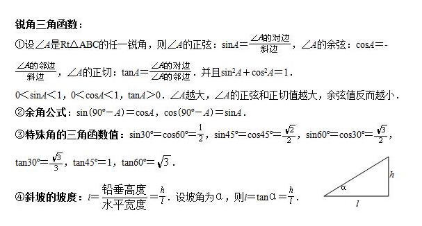 锐角三角函数公式