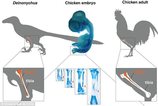 ![]() ![]() ![]() 研究者成功推迟了鸟类胚胎的发育,发现第一个脚趾不能翻转,反而长得很像恐龙的脚趾。 据英国《每日邮报》报道,智利科学家找到了一种再现恐龙特征的方法。在一个“逆向演化”实验中,研究者操纵鸡的基因诱导生成了类似恐龙腿骨的结构。 作为鸟类的祖先,恐龙下肢具有一根管状的腓骨,一直延伸到脚踝处。经过漫长的演化,今天鸟类体内的这根腓骨已经退化变短,形态变得尖细。 腓骨是小腿中靠外的骨,鸟类的腓骨在演化中变得比旁边的胫骨要短,并且不再与踝骨相连。有研究指出,鸟类在胚胎阶段会首先发育出一根管状的腓骨,类似恐龙化石中腓骨的结构。随着发育的进行,这根腓骨长成尖细形状,并且随着胫跗骨的生长,它的位置挪到了胫跗骨的后方。为了理解这一转变过程,巴西科学家博特略(Joao Botelho)对演化过程进行了逆转。 通常情况下,骨骼的骨干部分比两端更快成熟,会首先停止细胞分裂。但是,在智利大学研究者亚历山大·瓦尔加斯(Alexander Vargas)的实验室中,博特略通过实验发现,腓骨下端在发育初期很活跃,之后才停止细胞分裂,结束生长。 为了获得类似恐龙骨骼的长骨,研究者抑制了一个名为“印度刺猬”(Indian Hedgehog,ihh)的基因,使鸡保留着管状的腓骨。此时这根腓骨变长,而且连接着脚踝,就像恐龙一样。 研究者认为,这个导致腓骨生长受阻的早期突变,很可能是因为脚踝中的跟骨而引起的。在鸟类中,跟骨挤压着腓骨的下端,有时甚至会让人以为二者是一块骨头。研究者推测,腓骨下端可能收到了与骨干处类似的信号。 通常情况下,跟骨和腓骨最终会分开,但是在实验获得的“恐龙鸡”中,这两块骨结合在一起。而且,研究者称,跟骨强烈地表达PthrP基因,而正是该基因允许了骨骼末端的生长。 在长有类似恐龙骨骼的鸡体内,研究者发现其胫骨比正常的鸡短得多,这表明腓骨—踝骨的连接阻止了邻近的骨长得过大。研究者表示,这些发现于化石记录中的演化模式是吻合的。 事实上,这并不是博略特第一次在鸡身上表现出恐龙的特征。较早的实验中,研究者对鸟类可以翻转的脚趾进行了“逆向演化”,获得了像恐龙一样无法翻转的脚趾。耶鲁大学的一个实验室还通过操纵基因表达,获得了类似恐龙口鼻的结构。 尽管科学家已经证明演化特征能够被复原,但他们表示,我们没有必要担心类似侏罗纪公园那样的项目。“这些实验关注的是个别特征,是为了验证具体的假说,”瓦尔加斯说,“我们不仅对鸟类的发育有了很多了解,而且对恐龙到鸟类演变的研究也有了很多进展,从化石记录中可以发现许多信息。这些很自然地引出了许多关于发育演化的假说,并且可以在实验室中对这些假说进行验证。”(任天) |