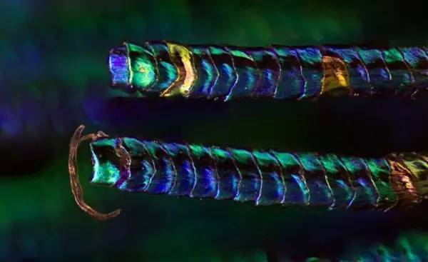 雄孔雀开屏时大家都会惊异于其美妙的色彩。加拿大摄影师Waldo Nell就他最近的摄影作品中展示了微观镜头下的孔雀羽毛。这里有个专门的术语叫做“彩虹色”,这种颜色在蝴蝶、蜻蜓、蝉和一些甲虫的翅膀上可以看到。从结构上上,它跟光子晶体类似。 ![]() ![]() Nell之前就拍摄过孔雀羽毛,但是放大的倍数不够。这次,他要拍摄更多的围观结构,展示“每个单独的羽枝都有着不同的颜色。”他并没有使用电子显微镜,但是他的奥林巴斯BX53成功完成了任务。因为受限于景深,为了获取整个视野,他用上了一种叫做照片重叠的技术:用不同的对焦拍下几十张招聘,然后把它们叠在一起。 ![]() Nell的日常工作是一名软件工程师,但是他从小集痴迷摄影。但是他直到2000年才拥有了自己的第一台数码相机,他从那时起就开始不断探索他的摄影世界,拍下了一幅幅生动的画面,“从最小的细菌道金星凌日,以及其中一切的事物”。点击这里可以看到他的摄影作品。 |