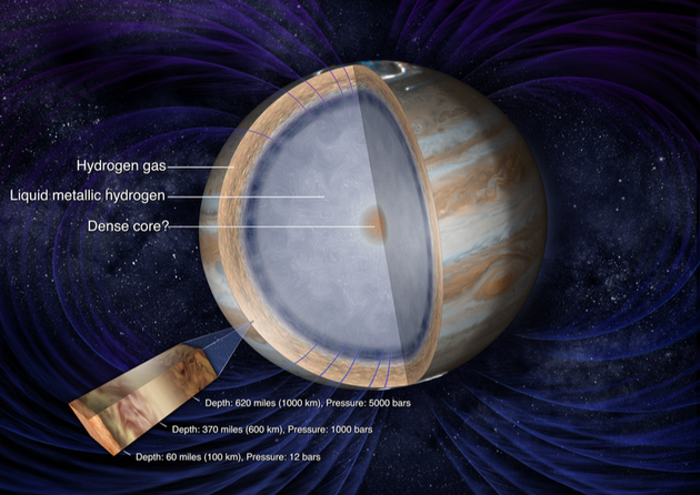 木星究竟是一颗怎样的行星? 木星和太阳的距离大约是日地距离的5倍,木星绕太阳一周大约是12年,恰好与一个生肖周期相同,所以在中国古代被叫做“岁星”。太阳光从太阳到木星需要大约43分钟。因为距离太阳更远,火星接收到的阳光也比地球上黯淡许多,只有地球上阳光强度的4%。这对朱诺号太空船是一大考验,不过朱诺号拥有面积高达60平方米的电池板,足以为飞船仪器提供420瓦的电力。 木星的质量大约相当于太阳的千分之一,但对于其他“兄弟”卫星而已是个不折不扣的庞然大物。它的质量相当于太阳系其他行星质量之和的2.5倍,地球质量的318倍。通过体积和质量的对比,你会发现木星比地球的密度小。的确,木星的密度大概只比水重30%。 虽然木星的密度比水大,但它不是液体或固体星球,却是一个不折不扣的气体行星。木星大气成分中有90%是氢,就像是氢气球。大气的其余主要成分就是氦,还有少量其他元素。既然木星是一个气体星球,那么人类发射的探测器自然就无法“登录”表面了。有人会问,木星表面都是氢气,那它会不会在某个深度有一片氢的“海洋”,让探测器去浮在海面上呢? ![]() 木星内部分层结构 不幸的是,这种情况也不存在。这是因为木星表面的温度“太高”,又不足以让氢气变成液体,随着逐渐深入木星,气体会“慢慢”变成液体。之所以说“慢慢”,是因为液体和气体浑然一体,并不存在一个清晰的“海面”,就像一片迷雾。 再往木星内部探索,那里的条件将更加残酷。温度来到了几万摄氏度,压强高到几百万个大气压。在这里,氢气被压缩成导电的金属。这层金属氢内部包含着的则是木星核心,至于核心里到底有什么元素、温度压力几何,现在也没有搞清楚。 木星大气除了它的“狂暴”外,也有美丽的一面,从木星的照片上可以看到大气呈明显的带状结构,深浅色交错。气体在浅色区域上升、在深色区域下降。而这些颜色是由木星大气里的某些物质反射造成,现在人类还没有真正搞清楚其中原因。 ![]() 位于木星南半球上的大红斑 此外,木星大气中“大红斑”也是一个神奇的天文现象。大红斑是位于木星南半球的一份超大号气旋,直径足以放下两三个地球。1667年,意大利科学家卡西尼一张手绘图片展示了木星上的“大红斑”。自17世纪人类发现它以来一直没有消失过,也就是说这场在木星上的大风暴已经持续了300多年。大红斑当中的风速可谓暴虐,地球上的12级风与之相比就是小巫见大巫。大红斑边缘处的风速最高可达430公里每小时,比我们乘坐的高铁还快。 ![]() 意大利天文学家手绘的木星图,大红斑清晰可见 早在1989年,美国已经发射过一枚“伽利略”号探测器,它在1995年抵达木星,开始围绕木星旋转。为了研究木星大气构成,“伽利略”号探测器还向木星释放了一颗大气探测器。这颗探测器“命运悲惨”,在进入木星大气1个小时后,就在与木星大气距离的摩擦和强大的压强下被摧毁了,科学家预测它可能直接被融化甚至蒸发,彻底消失在木星大气中。这也将是“朱诺”号最终的命运。 虽然人类之前已经发射过“伽利略”号探测器对木星进行过近距离观测,但是木星仍有磁场、大红斑、核心成分等未解之谜。“朱诺”号此次将携带磁强计、微波辐射计、高能粒子探测器等科学设备对木星进行观测研究。 最后,木星拥有67颗卫星,数量在8大行星中居首。其中木卫二表面存在水,这令科学家怀疑木卫二上是否有原始生命形态存在。 今天,朱诺号就将被木星的引力俘获,成为一颗极地轨道卫星。在为期大约一年的探测后,朱诺号将坠入木星大气,完成自己的使命。不过我们并不能实时看到图像。之所以选择这样的宿命,是因为科学家担心朱诺号可能污染存在原始生命的卫星。距离延时加上信号带宽太小,我们只能静静等待8月份传回的图像,那将是木星有史以来最清晰的“自拍照”。 数百年来人们一直在尝试对这颗星球进行研究,但关于这颗气态巨行星,我们仍然有很多基本的问题有待解答。 木星是如何形成的?木星大气中含有多少水和氧气?木星的内部结构究竟如何?木星的自转更加符合刚体转动,还是在内部不同深度上存在不同速度的自转?木星拥有固态内核吗?如果有,这个内核有多大?木星强大的磁场是如何形成的?木星云层顶部所见的很多大气结构向下延伸多多深,它与木星大气深部运动之间有何关联?木星极光产生的机制是什么? 巨大星球厚厚的云层和剧烈的风暴下方,依旧隐藏着许许多多有关这颗巨大行星的身世,以及整个太阳系形成历史的未解之谜,这些让人类困惑的问题,朱诺将一一讲给我们。 木星探测大事记 1610年:伽利略进行了首次详细的木星观测; 1973年:美国宇航局的先驱者-10号飞船成为首个穿越小行星带的人类航天器,并飞掠木星; 1979年:美国宇航局的旅行者1号和2号飞船发现了木星暗弱的光环,几颗新的卫星,并发现在木卫一表面存在活火山爆发; 1994年:世界各地的天文学家和美国宇航局的伽利略探测器对“舒梅克-列维9号”彗星撞击木星南半球的全过程,这是人类首次全程目睹一次天体碰撞; 1995年:美国宇航局的伽利略号飞船携带探测器抵达木星,开展首次木星大气直接探测并对整个木星系统进行了详细考察。 (边策 郭祎) |