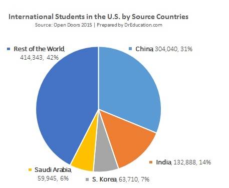 | 根据最新的Open Doors data数据表明,每一年在美国各所高校注册的国际生逐步增长。在2009年到2014年,国际生的数量已经增加了41%,已经达到974,926人次.
