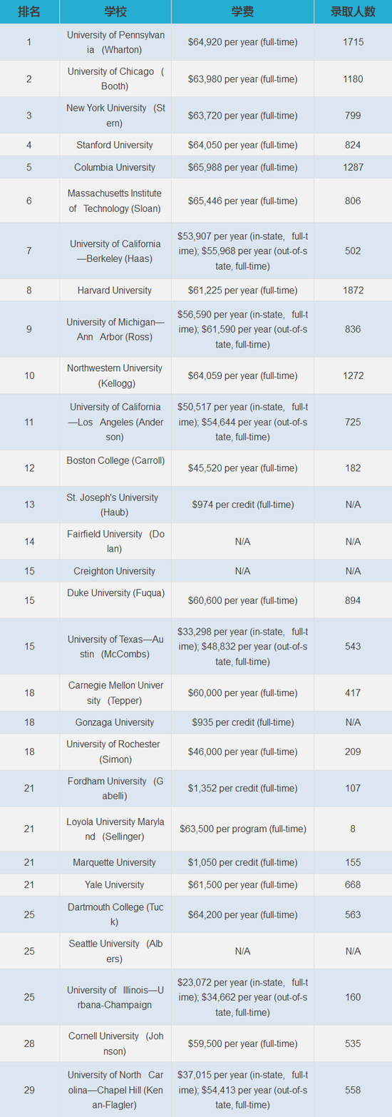 终于等来了2017年U.S.News研究生美国大学排名,排名涵盖了商科、教育、工程、法律、医学、护理六个大专业。从学费、录取人数、录取分数、录取率以及毕业率等指标给出了相应的数据参考。排名一出,就给大家火速整理了2017年U.S.News美国研究生商学院排名,来一睹为快。 ![]() |