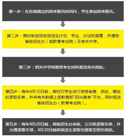 一、什么是保送生? 保送生无需参加高考(有的省规定保送生可自愿参加高考,但不再参加统一录取)。符合保送条件的学生经中学推荐,并通过大学测试合格后即可进入大学就读。 二、哪些学生具有保送生资格? 根据教育部等有关部门规定,省级优秀学生、中学生学科奥林匹克竞赛国家集训队成员、部分外国语中学推荐优秀学生、公安英烈子女、退役运动员等5类人员具备高校保送资格。凡教育部公布的2016年全国普通高等学校名单中的高校均有资格招收保送生。 三、保送程序是什么样的? 1.高校合理编制招收保送生计划,并纳入国家核定的本校当年招生总计划内。 2.招收保送生的高校应根据教育部、国家体育总局等部(局)的有关规定,结合本校实际,制订保送生招生简章,并通过本校网站向社会公布。 3.获全国中学生奥赛全国决赛一等奖并入选为国家队集训队的学生和省级优秀学生,由本人向所在中学申请并经中学审核公示。 各外国语中学应根据相关推荐办法及教育部确定的推荐限额,公开选拔本校符合推荐保送要求的学生。 以上三类有保送资格的考生名单,将在教育部阳光高考信息平台(http://gaokao.chsi.com.cn/)进行公示。符合保送条件的退役运动员,可向国家体育总局申请,并由国家体育总局进行资格审核后向有关高校推荐。符合保送条件的公安英烈子女,可向烈士生前所在单位或英烈现工作单位提出书面申请,逐级报至省(区、市)公安厅(局)政治部审核。符合保送条件的考生要参加其户口所在地省级招办统一组织的高考报名。 4.高校要对本校拟录取的保送生进行文化测试及相关考核。招收外国语中学推荐保送生的高校要组织本校外国语言文学类专业保送生文化测试及相关考核。符合保送生条件的公安英烈子女要参加公安部统一组织的考试。 5.高校要将已测试合格拟录取的保送生数据库上传至教育部阳光高考信息平台(http://gaokao.chsi.com.cn/)。有关生源所在省级招办随后在网上审核确认后下载数据并办理录取手续,再将保送生录取名册寄至相关高校。经省级招办审核录取的保送生免于参加普通高校招生全国统一考试。 四、保送生招生方式 ![]() 有关省级教育行政部门应在本单位网站公布省级优秀学生评选办法、公示获评的省级优秀学生基本信息及事迹材料。严禁高校以保送生招生形式违规录取未经本校文化测试和相关考核的考生。有关高校要安排外国语言文学类专业接收外国语中学推荐保送生,并向非通用语种专业倾斜;严禁高校以保送生招生形式将外国语中学推荐保送的学生录取或调整到非外语类专业。 六、保送生与自主招生的区别 申请条件不同:保送生的申请条件由教育部统一规定,要严格一些,而自主招生由各高校确定,相对宽泛一点。 优惠政策不同:经省级招办审核录取的保送生免于参加普通高校招生全国统一考试;而自主招生考生必须参加高考,录取时可降低一定分数提档。 |