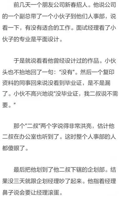 | 最近,跟几个朋友在一起聊孩子们。 当我们说现在的孩子真的太幸福时,有一个胖乎乎的男孩就凑了过来说:“叔叔,我们可过得一点不幸福,你看我每天要起早上学,然后晚上还要熬夜写作业,周末还要去特长班,太累了” “而且压力很大,大人们上班可轻松多了。”一个女孩补充了一句。 可是孩子,你看到了父母的辛苦,体味到父母的不易吗? 要知道,如今让你们吃点苦,努力读书,也是为了你们自己将来生活的更好一点。 因为你脚下的路,就是你看世界的路。你玩乐、慵懒、放纵,误入歧途,最终吃苦的是你自己。你努力、拼搏,那会走得更远,看到更美好的风景。 孩子,别说你压力大。 当你长大后,会发现世界会善待努力的人。总有一天,你也会怀着一颗惴惴不安的心,敲开面试官的门。 才会发现自己以前的努力,如今都会化为力量,成为展示的资本,赢得青睐。从而拥有人生的第一份工作。 还记得我当年大学还没毕业,在最后的一个学期,就开始找工作。因为家里送我读书已经是山穷水尽的地步,实在拿不出生活费,我得自己去挣。 所以当我的邮箱收到一家公司的面试邀请时,几乎在宿舍里蹦了起来。同寝室的兄弟也都纷纷为我祝贺。 我珍惜这来之不易的机会。认真的做着准备,自己去实地取景,做好方案,然后又把面试需要注意的地方一一检查。 大家玩的时候,我在埋头做方案,为此足足准备了三天。 但是那天面试的时候,恰逢面试公司有一个重要的签约仪式,经理满头大汗的跑过来,匆匆扫了一眼我的简历,然后就要走。 就在这个时候,我说了一句“您看看我做的这个方案。”他就把我那一摞厚厚的方案拿去看了一下,过了一会就说:“你明天来上班吧,不过要先实习三个月,表现好的话一个月转正。” 然后他就匆匆忙忙的走了。不知是不是我的幸运,他因为太忙,所以匆匆收了我。 不过一年后,经理跟我谈及此事,我开玩笑说面试那天是不是他太忙了,当时根本就没细想就招了。 他很认真的说:“我是看到了你的用心和勤奋,那时候有10多个比你条件好的应聘者,简历都在我的桌子上。有名校的,也有几个有经验的,但你是唯一做了方案的那一个。” 这时,我才明白,哪有什么幸运啊。而是自己曾经的努力,是准备时熬的那些夜,是汗水浇筑出来的。 很多孩子会抱怨学习苦。那是因为真没吃过苦,吃过苦的人才会知道,学习是多么轻松的一件事。 当然,刚开始的时候会有困难,而且遇到瓶颈的时候,更是让自己揪心。可是一路上咬紧牙关,看到自己的进步时,你会发现,原来自己的努力有回报。也会体味到学习的乐趣。 每年到了毕业季,媒体就会报道有几百万大学生就业,就业压力大。其实,真才实学的大学生,很多在没毕业时就被抢走了。 而你如果打着一个大学生的牌子,而肚子里没有一点专业知识,脑子里满是玩乐。你觉得哪个公司敢让你去练手呢?商业可是逐利的,不是儿戏。 ![]() 如果你有真才实学,何惧那些暗流急湍。而你只是混的话,那就不要去让人笑话。 当然很多人不需要奋斗也家里有很多套房,有好几辆车。钱怎么用都用不完。但这种人是投胎技术高超,普通人就不要妄想了。 对于普通的我们来说,努力读书是唯一的出路。 孩子,真的不要说读书苦,因为很多很多事比它要苦。 不是每个人都有机会去建筑工地,去了那个地方回来的人,但凡有一个读书的机会,都不会想回去了的。 我那时候因为家里穷,高中时的暑假就会去建筑工地跟着亲戚做点小工。给他们搬运一些钢管、钢扣子。虽然都是拣轻便的活给我,但是夏天还是热得吃不下饭,好几次差点晕倒。 赶工程进度时,常常熬到深夜,第二天早上又要起床,浑身都累的软趴趴的。每天要喝很多的水,因为汗如雨下。 我说自己得到故事给孩子听,他们都会觉得生活不易。我说为了挣钱,有时要吃苦才行。儿子就吓得说不想挣钱。 我说,你现在不要为钱操心,因为有爸爸在。但是你要答应我努力读书。每天都读一个小时的绘本,学习一小时好不好?儿子懂事地点点头。 我知道,总有一天,孩子也会如我当初一样。小心翼翼地走进一个又一个陌生的环境。也会为自己的事业和家庭奔波劳神。也会感慨人生太苦,活着不易。 所以,我要在他最需要努力的时候,在最好的最该学习的年华里。告诉他,多读一点书。告诉他,你若不去拼搏,谁去帮你? 有个妈妈问我有没有想过生二胎,因为她怕生两儿子,要给孩子买房娶媳妇,压力太大。 我说没事啊,我真的不怕,因为我一直觉得,孩子学习上的事,我尽全力。 至于将来那些买房和娶妻的事,孩子自己去拼。做父母的,只能送这一程,不管一世。前途嘛!还得孩子自己去挣。 |
