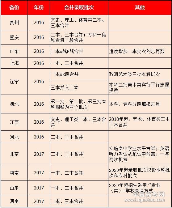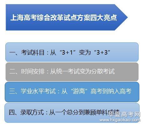 2017年高考改革牵一发而动全身,关系到千千万万个家庭。小编很希望各位考生能赢在起跑线上,为此特汇总了试点省份的改革亮点及应对方案,供大家参考! 试点:上海 ![]() 1、新方案要求学生在语、数、外之外再选考3门,将有利于引导学生拓宽知识面; 2、分散考试,有利于缓解考生的学习压力和心理压力; 3、高中学业水平考试提高了“含金量”,不仅对学生学习起到质量监测和导向作用,而且成为高考选拔的依据; 4、高校招生录取既考虑总分、又兼顾单科成绩,赋予高校选拔学生的自主权和新机遇,同时也提出了新挑战。高校可根据各专业特点,选择具有一定学科背景的学生,同时高校也必须对专业培养方向、目标要求进行梳理,在招生之初就想清楚要招什么样的人。 试点:浙江 ![]() ![]() 小编解读: 假如考生每一个事关高考成绩的考试机会都不放过, 高中三年参加的高考场次达10场——3门选考科目各2场;英语2场;语文、数学各1场。如果再加上同样有2次机会的学考,即语数和其他4门学考科目各2场,那么学考加选考的场次最多可以达到22场。 近两年,多地合并录取批次进入实施阶段。截止2016年,全国已有天津、浙江、福建、湖北、等省市,将本科第二批次与本科第三批次,合并为本科第二批次进行招生录取。 2017年还有北京、河南等省市实行二、三本批次合并录取。山东、海南省从2017年起,将在高考录取中取消一本、二本的划分,所有本科院校平等竞争,成为全国范围内最先取消本科录取批次的省份。 ![]() |