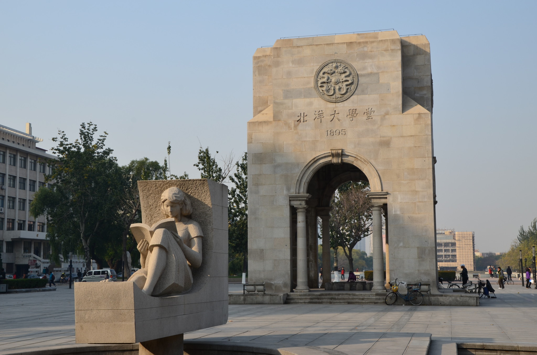 ![]() 天津大学,坐落于天津市南开区六里台,是中华人民共和国教育部直属国家重点大学,其前身为北洋大学,于中日甲午战争后第二年,即1895年10月2日由天津海关道盛宣怀创办,是中国创办的最早的现代意义上的大学。始建于1895年10月2日的天津北洋西学学堂,是中国第一所现代大学。天津大学是“211工程”、“985工程”首批重点建设的大学,校训为“实事求是”。目前,天津大学正在海河教育园区内兴建新校区,2013年投入使用。 历史沿革 【肇基学府 洋洋大风】 ![]() 1896年北洋西学学堂正式更名为北洋大学堂,是中国第一所命名为“大学堂”的高等学校。 1899年,天津北洋大学堂的第一届学员毕业。第二年元月,学堂颁发了中国历史上第一张大学文凭。由于成绩最优,从香港考入的学员王宠惠有幸成为“钦字第壹号”文凭获得者。北洋大学堂由于治学严谨,校风朴实,当时在国内与哈佛、耶鲁齐名,毕业生可免试进入美国一流大学攻读研究生,被誉为“东方的康奈尔”。 天津北洋西学学堂按照美国近代模式办学,在课程设置、教学内容、教科书、教学方法上,全面引进西方教育模式。北洋大学堂建立了一套较为完善的教育教学管理制度,设立头等学堂(大学本科)、二等学堂(预科),学制各为四年。头等学堂设专门学(即科系)四门:工程学、矿务学、机器学、律例学,1897年学堂增设铁路专科,1898年又设铁路学堂,上述学门皆为当时中国社会所急需,体现了北洋大学“兴学救国”的创办宗旨。 1900年八国联军入侵津京,学堂校舍为敌兵所霸占,设备、文档案卷遭毁坏,学校被迫停办。至1903年4月学堂方在西沽(今河北工业大学红桥校区东院)正式复课。 1903年北洋大学堂开学复课时,分设法律、土木工程、采矿冶金三个学门,后应外交需要附设法文班、俄文班,1907年开办师范科,至此北洋大学已成为包括文、法、工、师范教育诸科,初具综合性的新式大学。 1912年1月北洋大学堂改名为北洋大学校,直属教育部,1913年又改称国立北洋大学,至1928年更名为国立北平大学第二工学院。 【筚路蓝缕 穷理振工】 ![]() 从1920年6月起,北洋大学专办工科,设有土木、采矿、冶金三学门;后学门改称系,至1935年北洋工学院设有矿冶、土木、机械、电机共四个系。北洋工学院于1933年开始成立研究所,1934年,其组织章程经教育部核准,1935年初,开始招收研究生,首届研究生于1937年“七·七”事变前毕业,并授予硕士学位。 1928年,南京国民政府在教育上试行大学区制,北洋大学改称“北平大学第二工学院”。不久大学区制废止,北洋大学暂称“国立北洋工学院”。 【三工连理 薪火相承】 ![]() 1937年7月7日,日本侵略军发动全面侵华战争。7月30日,天津沦陷。9月10日,教育部下令“以北平大学、北平师范大学、北洋工学院和北平研究院等院校为基干,设立西安临时大学”。1938年3月,西安临时大学改称国立西北联合大学。7月教育部指令西北联大改组为西北大学、西北工学院、西北师范学院和西北医学院。 国立西北工学院(又名国立西北联合大学工学院)由北洋工学院(即天津大学)与北平大学工学院、焦作工学院(中国矿业大学)、东北大学工学院(即东北大学)合组而成,学院设在陕西城固县古路坝,初设土木、电机、化工、纺织、机械、矿冶、水利、航空八个系,后又增设工业管理系。 1941年10月,中国工程师学会及各专门工程学会在贵阳举办联合年会。借此相聚之机,各届北洋校友就复校事宜进行了磋商,会谈决定在呼吁恢复国立北洋工学院的同时,筹设私立北洋工学院,由全国北洋校友共同筹办。在此压力下,国民政府行政院于1942年12月将原浙江省立英士大学升格为国立英士大学,将其工学院划出,独立为国立北洋工学院,任陈荩民为代理院长,因工学院地处浙江泰顺百丈口镇,故史称“泰顺北洋工学院”。同期,李书田于1944年春在西安筹建了北洋工学院西京分院,下设土木工程、水利工程两系,并以北洋治学精神主持西京分院。 【百川归海 西沽重兴】 ![]() 1945年10月22日北洋大学正式复校开学。复校后的国立北洋大学,在原来工学院的基础上,增设了理学院,从此北洋大学进入理工结合时期。工学院下设土木、水利、采矿、冶金、电机、航空、机械、化学工程学系八系,后增设建筑工程学系和纺织工程学系;理学院设置与工学院关系密切的物理、化学、数学、地质学四个基础学科系。复校后,北洋大学以“研究高深学术,培养专门人才”为宗旨,制定了“决不忽视穷究学理,同时注重科学应用,使理工有机结合起来”的教学方针,并积极付诸实施;同时,成立土木、水利、采矿、冶金和化学工程等五个工程研究所,积极开展学术交流与科学研究,并着手招收研究生,被各界誉为“科学建国的堡垒”。 【改天换地 北洋新生】 ![]() 1949年11月起,北洋大学隶属中央教育部直接领导。此后,北洋大学进行了增强教师阵容、课程改革、管理体制改革等一系列改革。改造后的北洋大学实行校、院、系三级管理,学校设立理学院、工学院。 1951年9月22日,北洋大学与河北工学院合并,定名为天津大学。 1952年全国高校院系调整之前,天津大学设土木、水利、采矿、纺织、冶金、机械、电机、化工、地质、数学、物理共11个系。 院系调整中,天津大学抽调数学系、物理系并入南开大学;抽调冶金系、采矿系金属矿组组建北京钢铁学院(即北